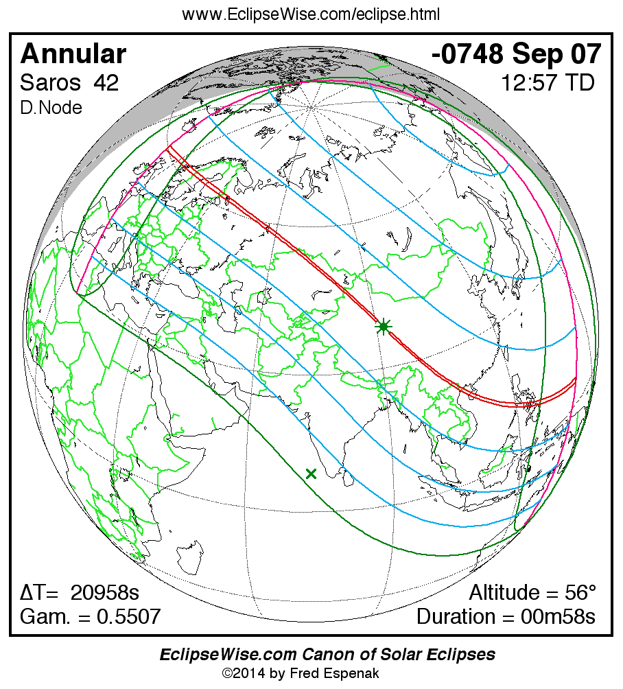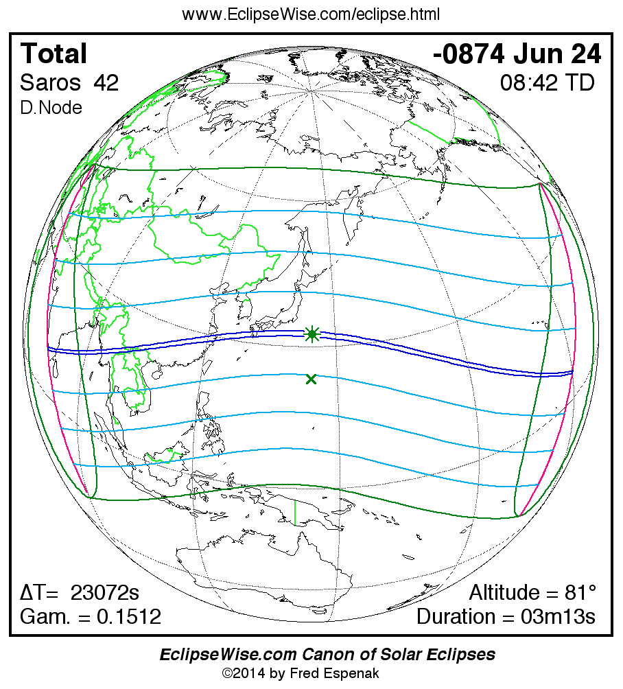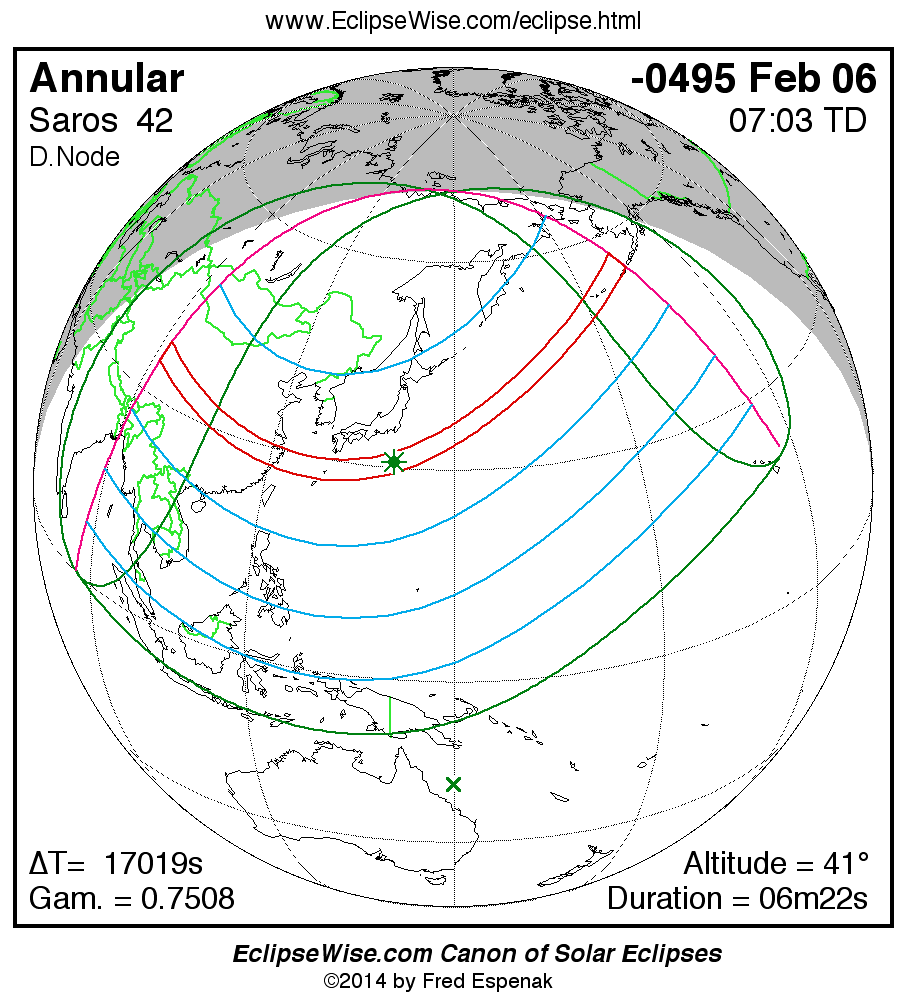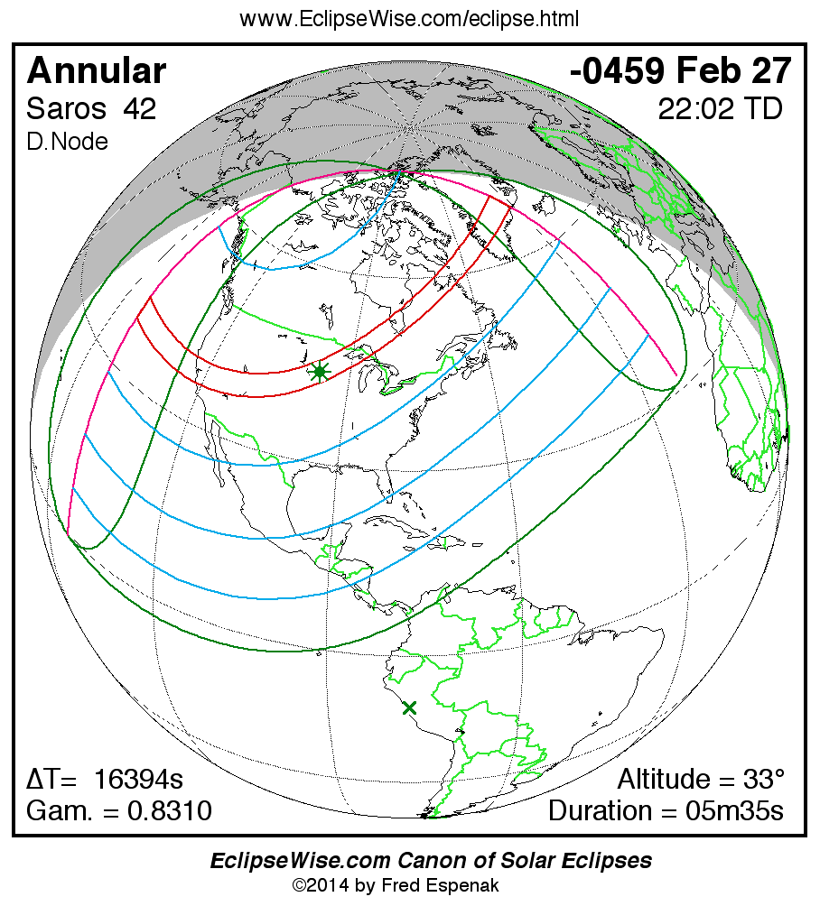 For more information on this series see Statistics for Solar Eclipses of Saros 42 .