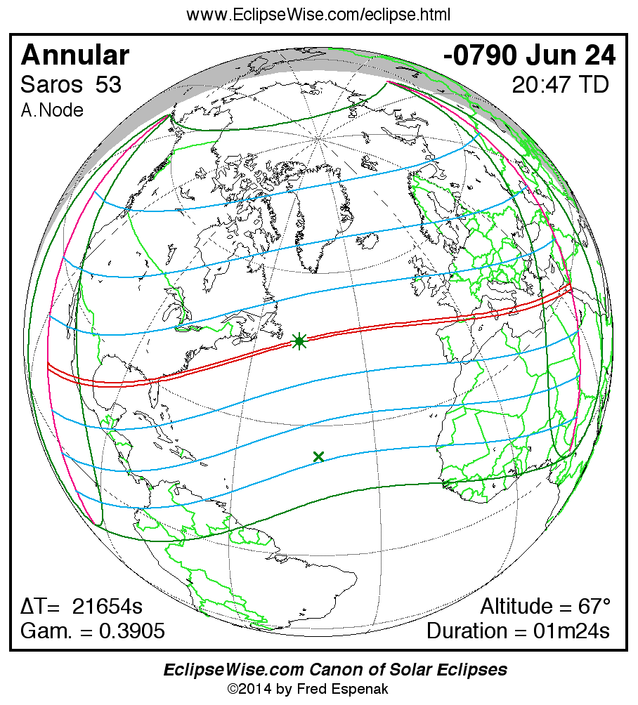 For more information on this series see Statistics for Solar Eclipses of Saros 53 .
