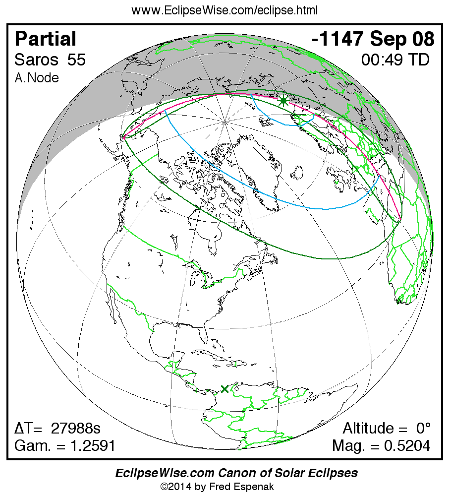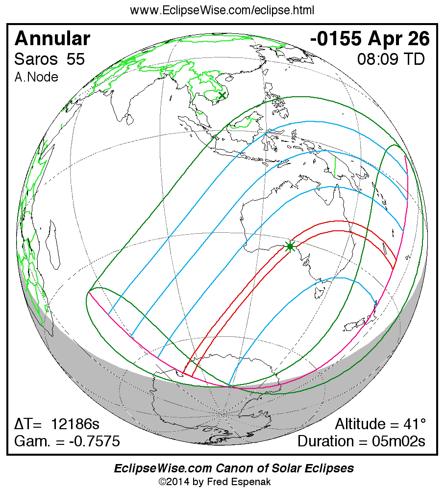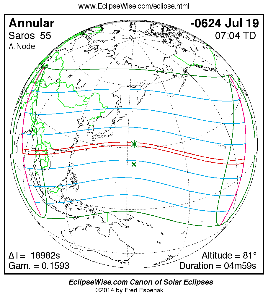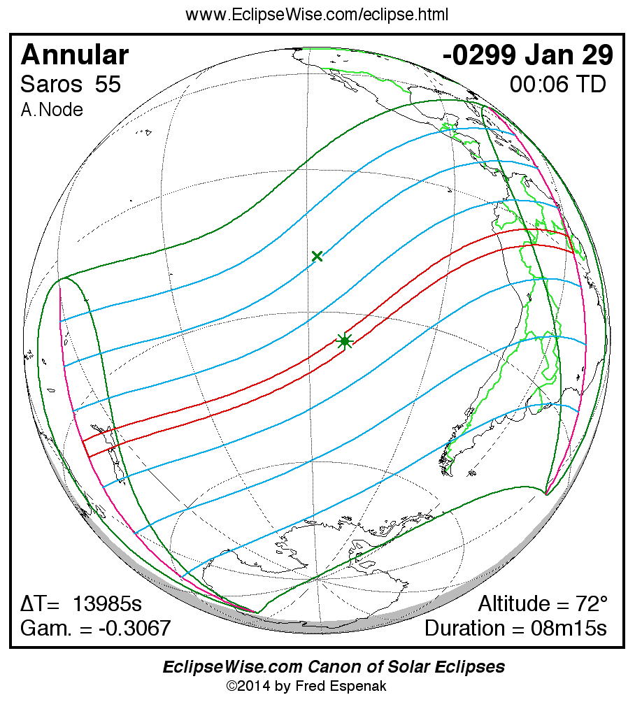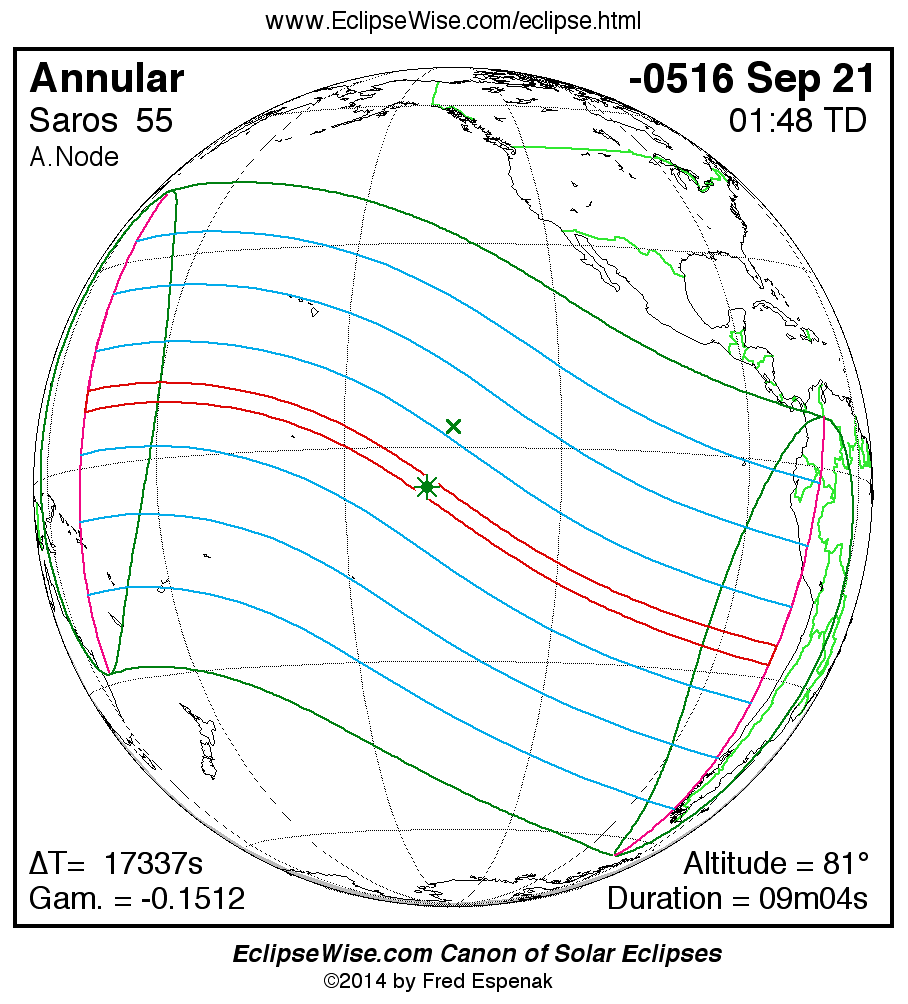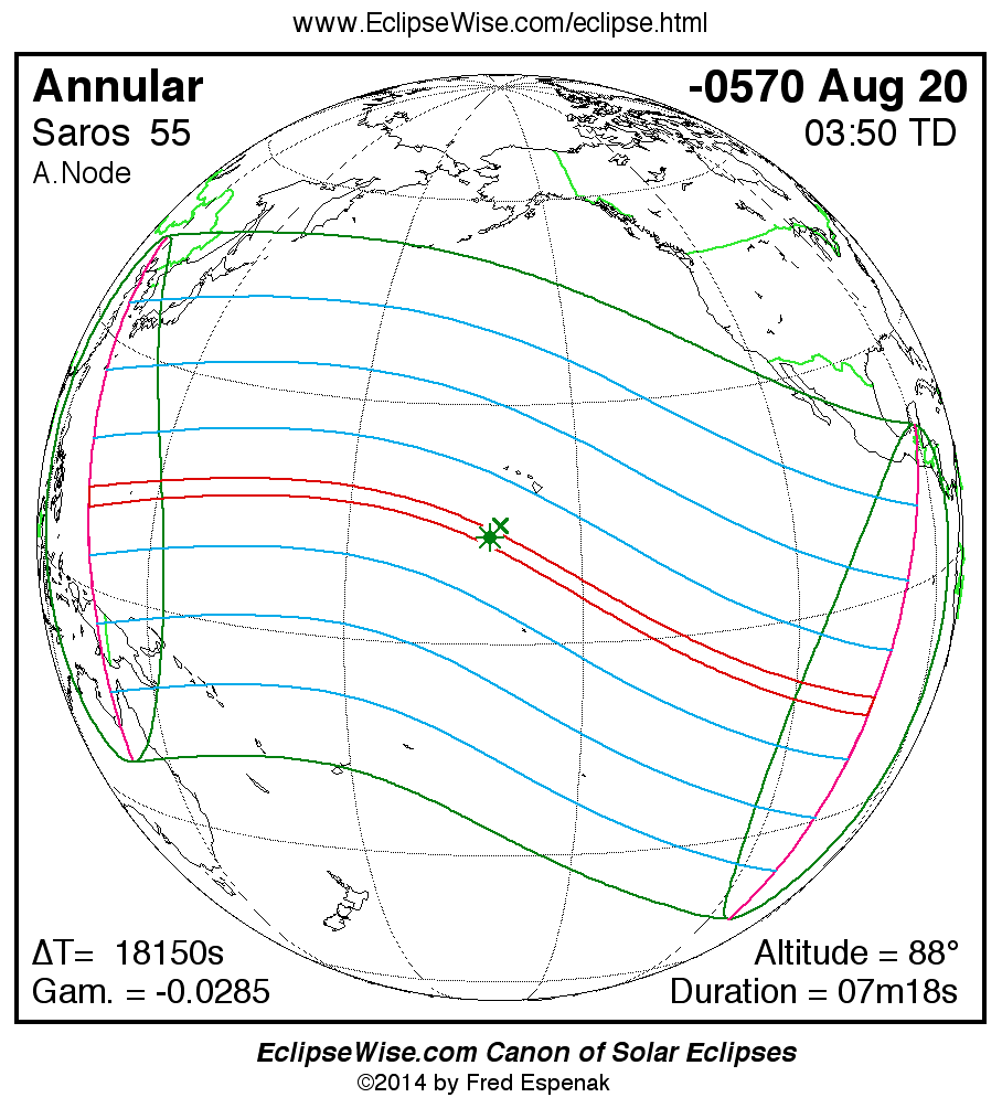 For more information on this series see Statistics for Solar Eclipses of Saros 55 .