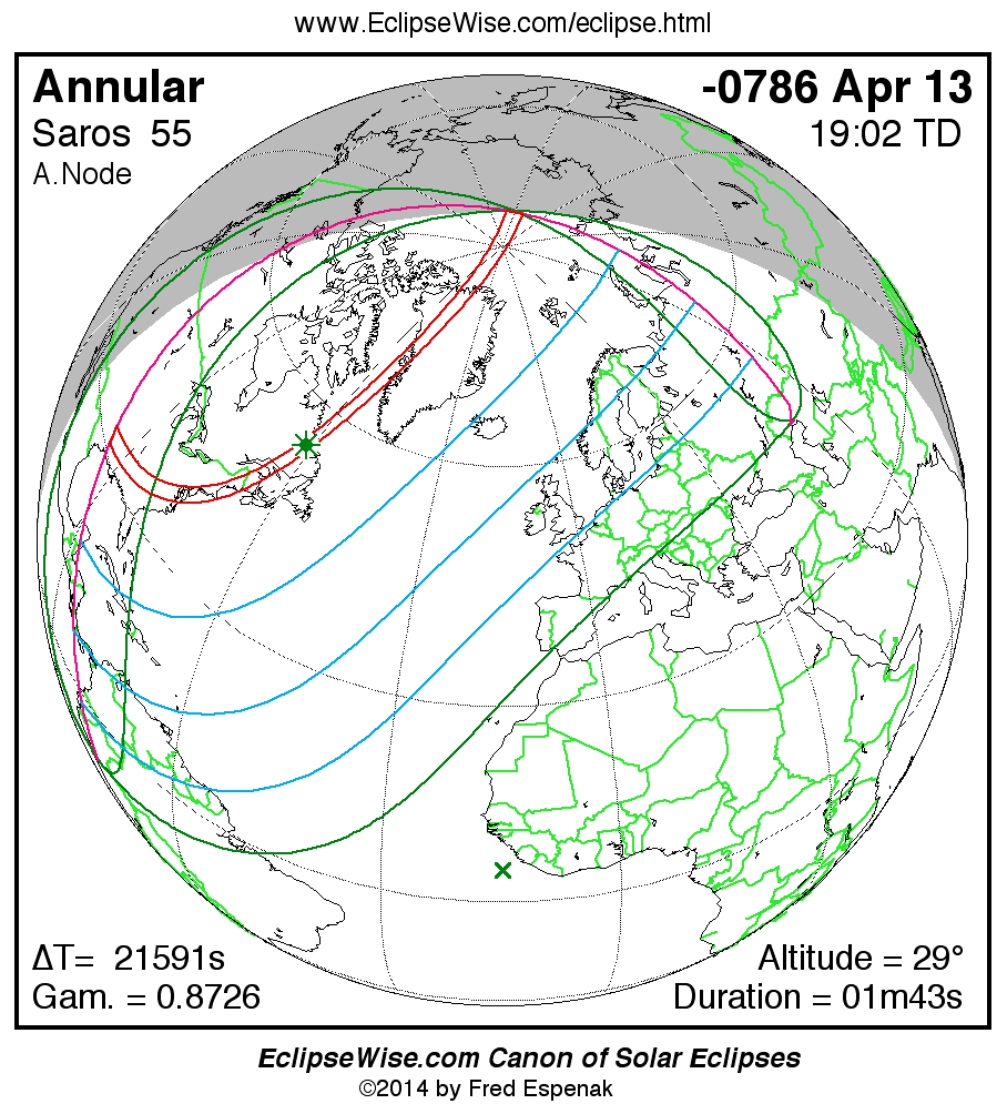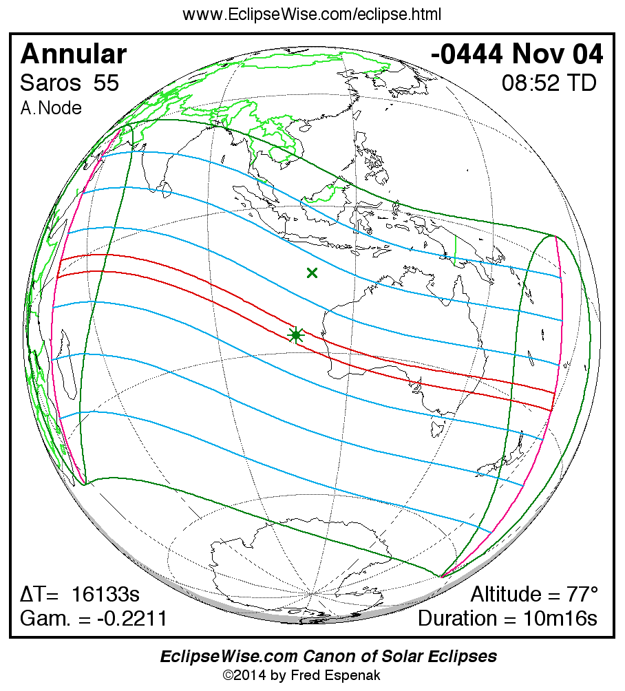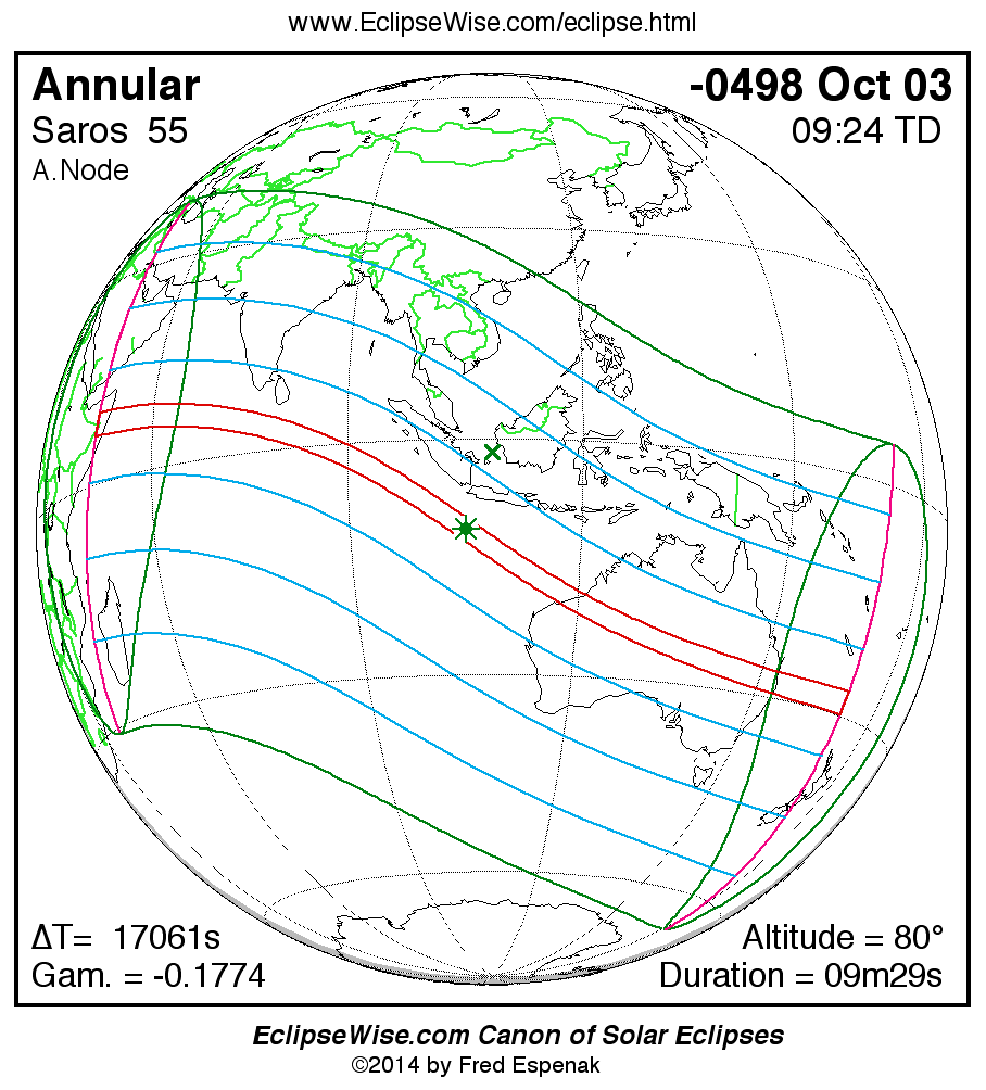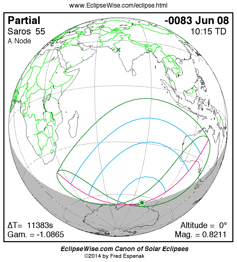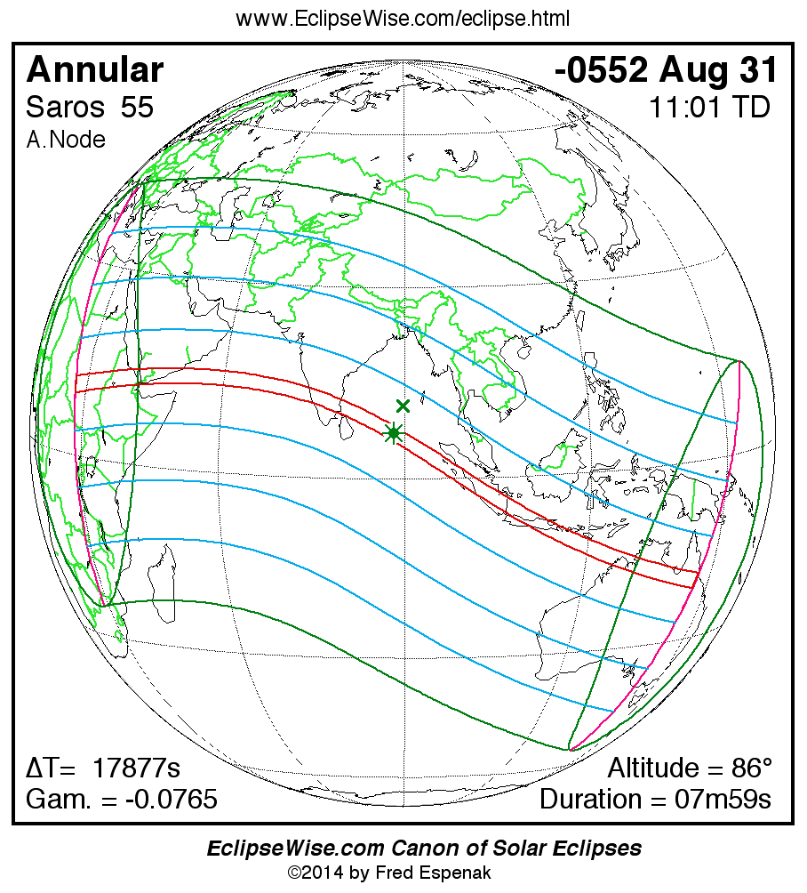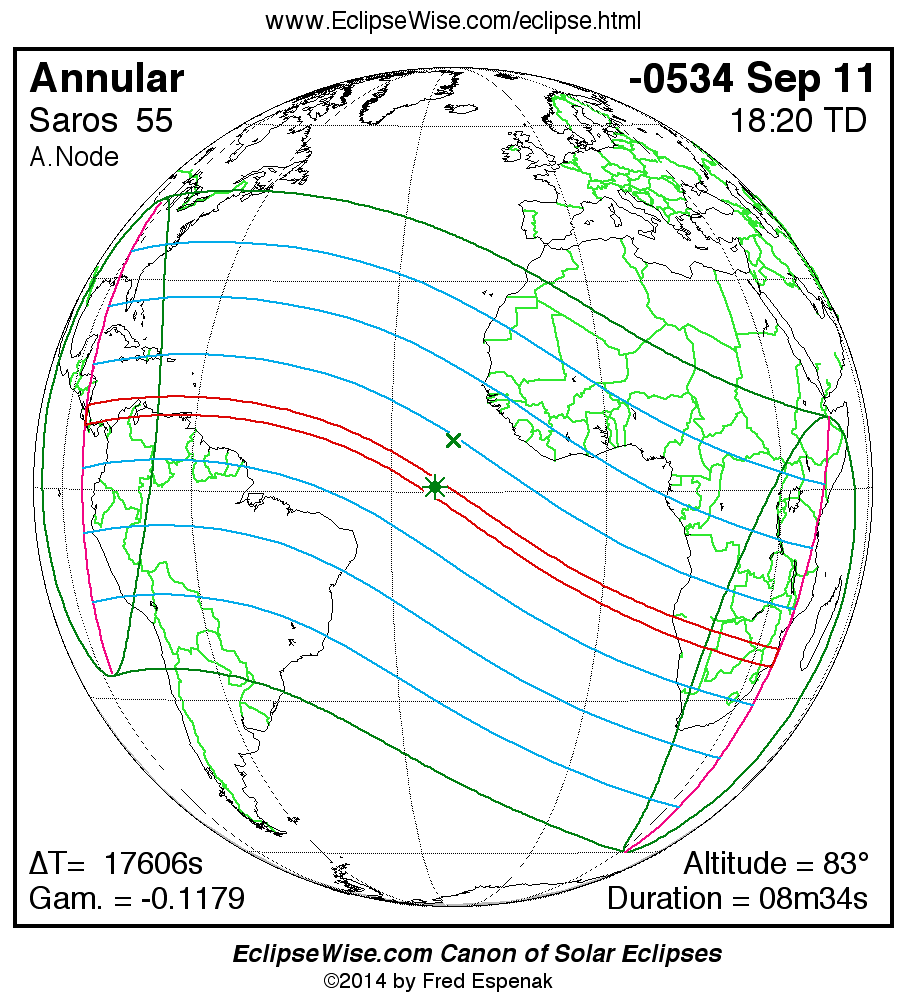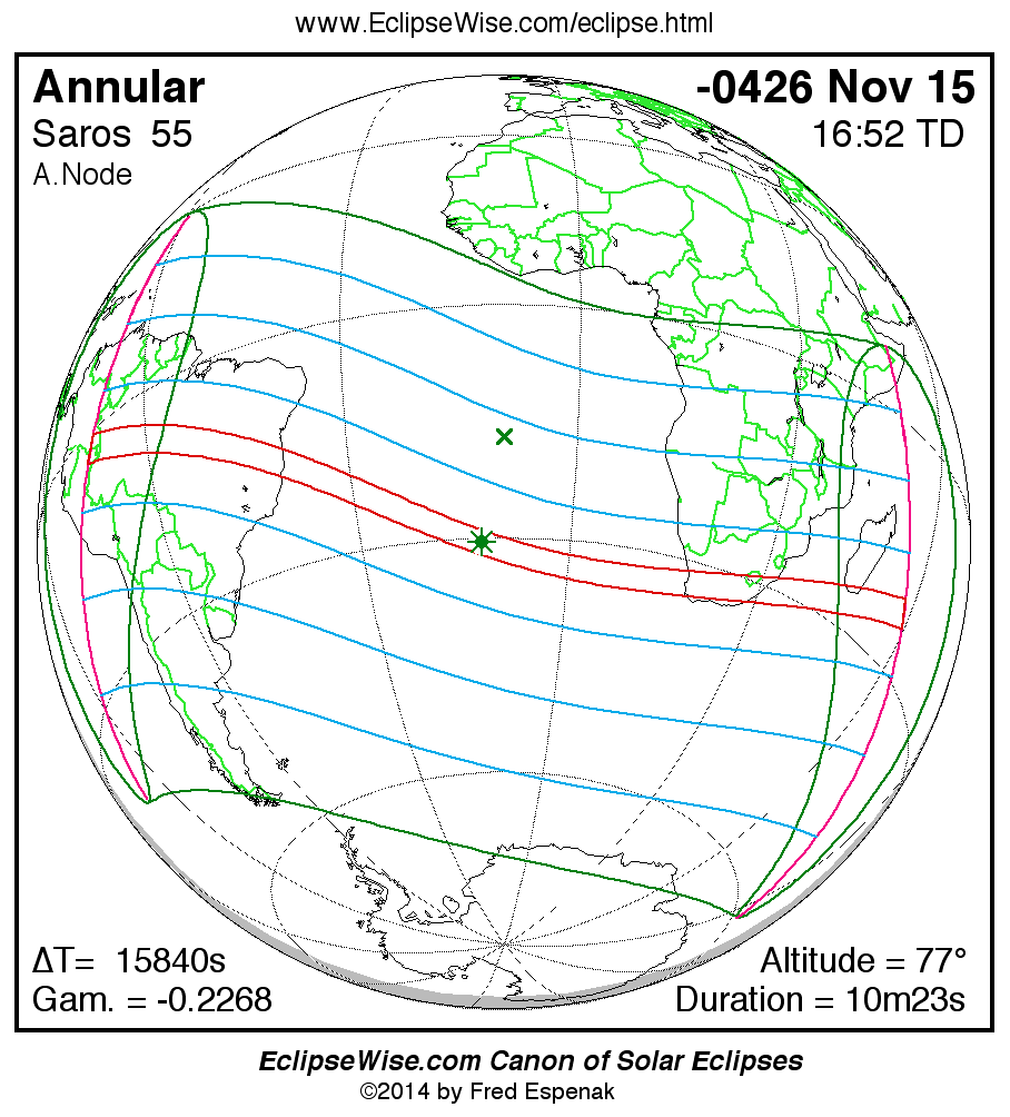 For more information on this series see Statistics for Solar Eclipses of Saros 55 .