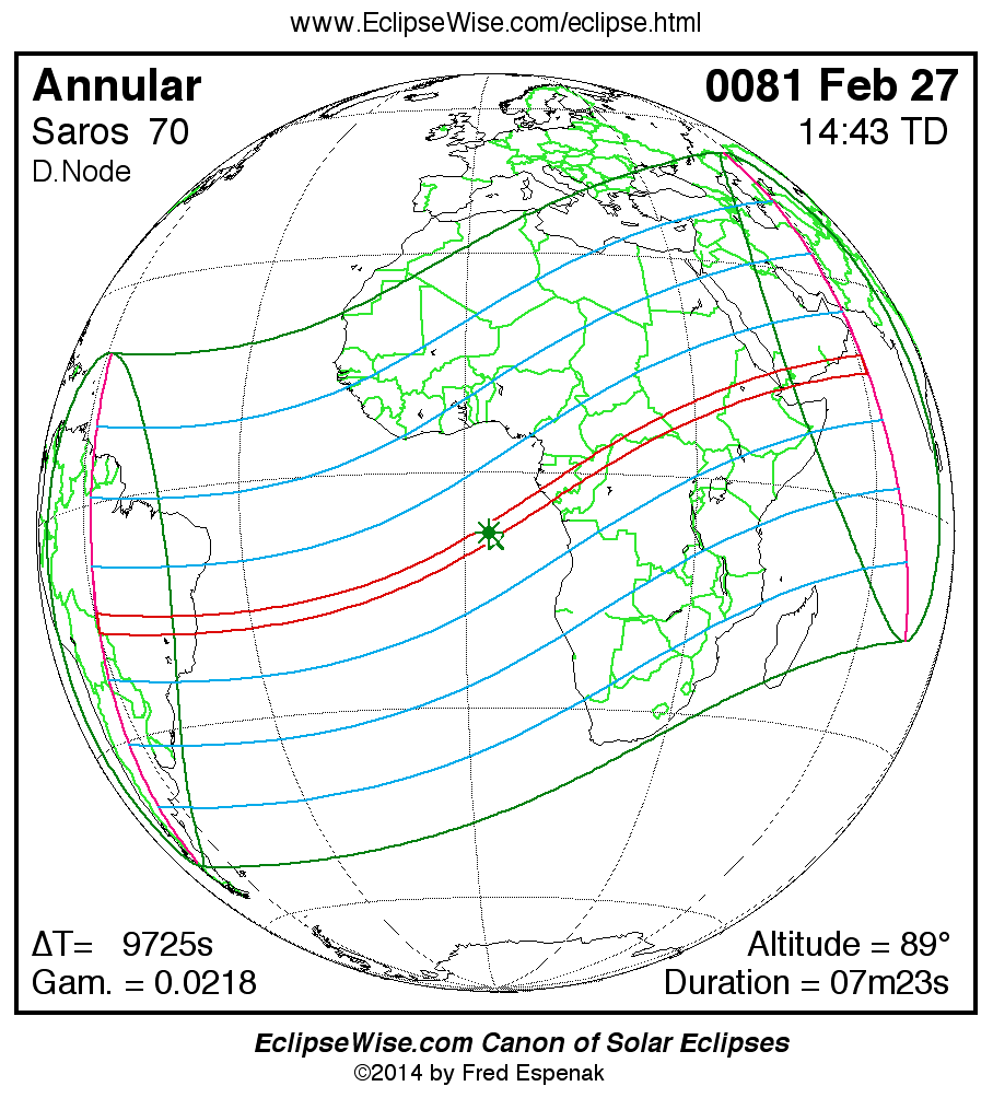 For more information on this series see Statistics for Solar Eclipses of Saros 70 .