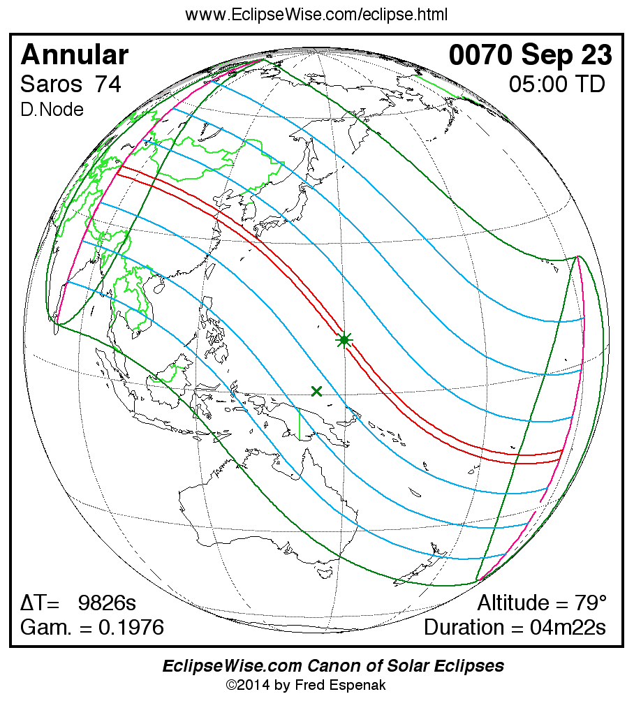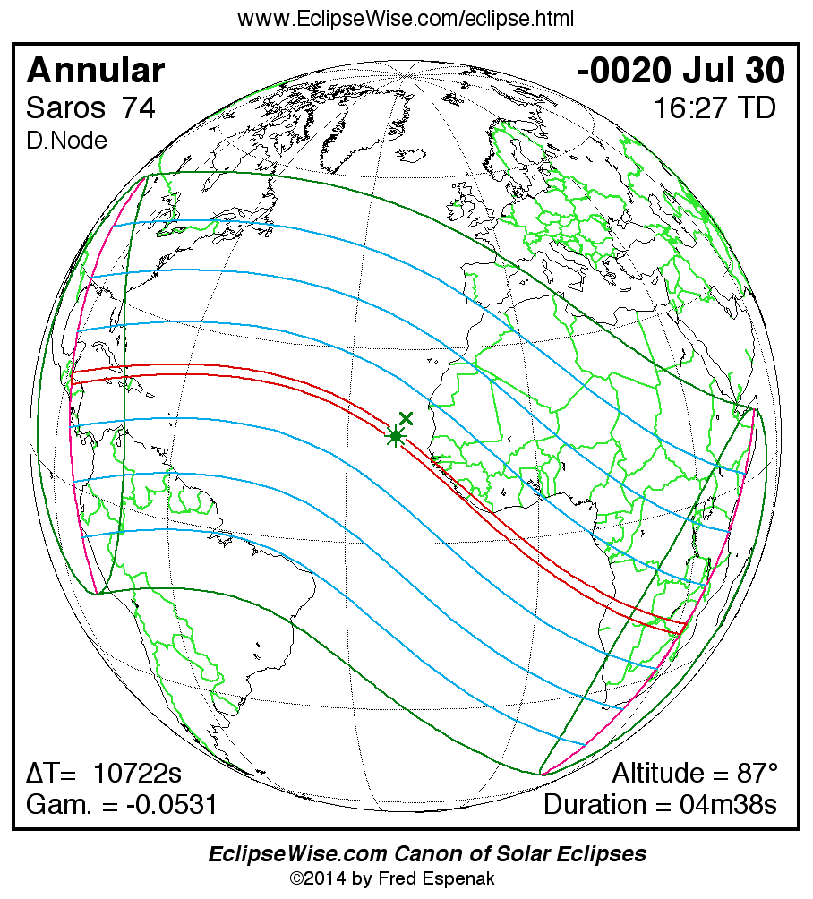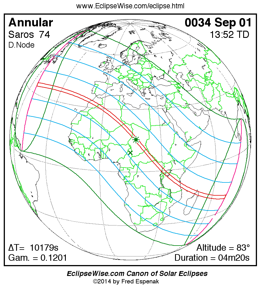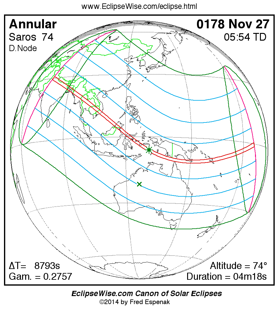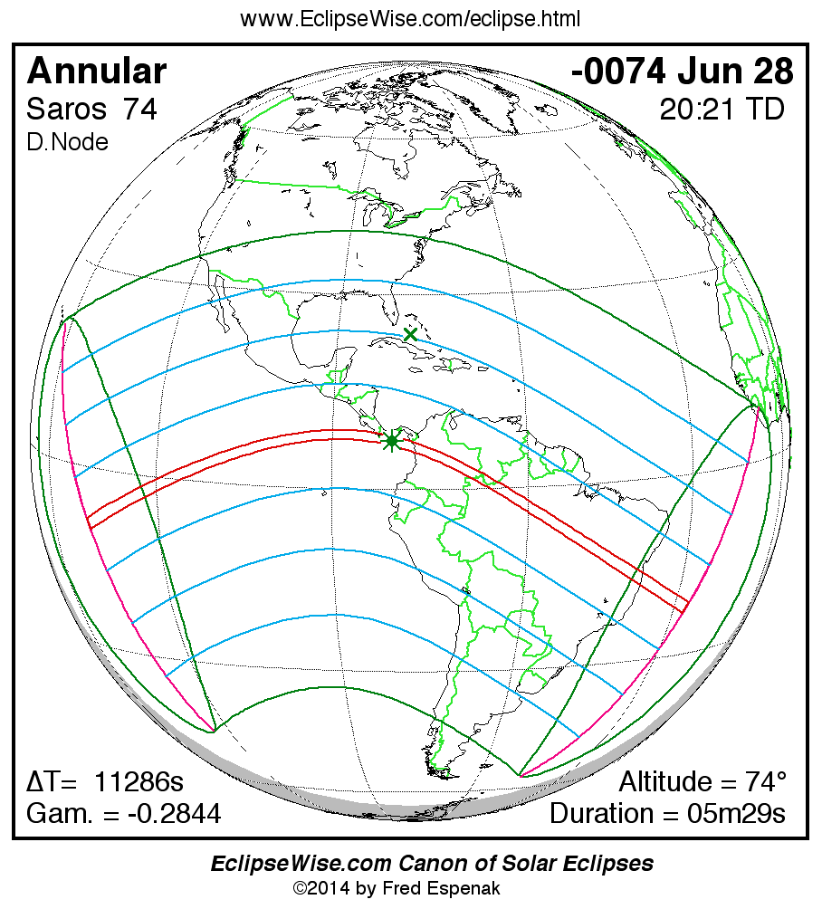 For more information on this series see Statistics for Solar Eclipses of Saros 74 .