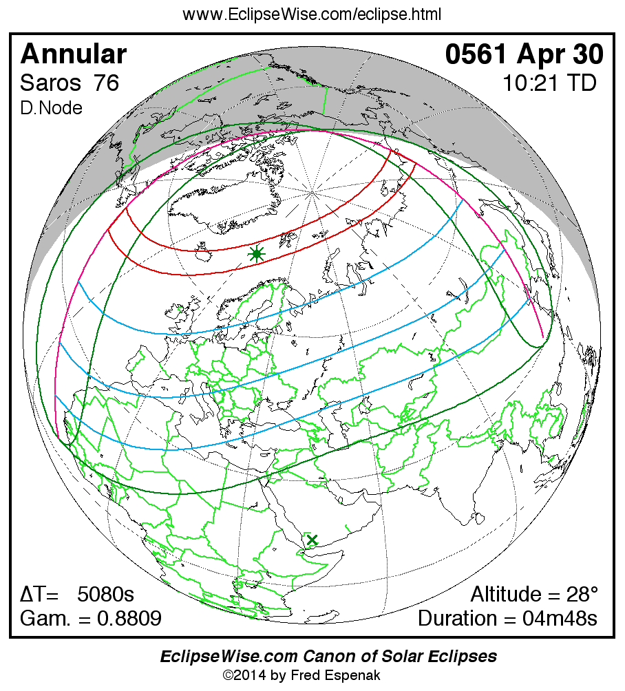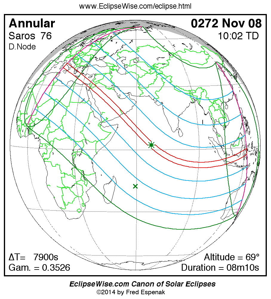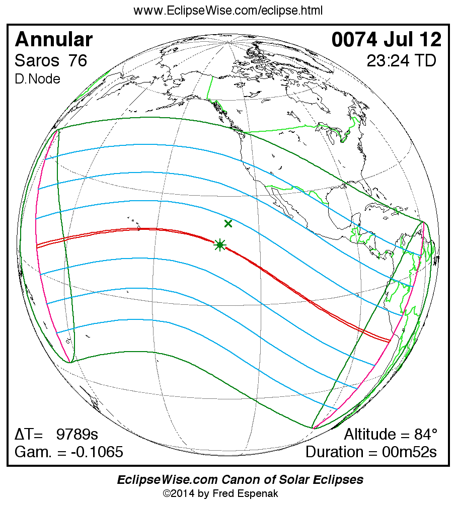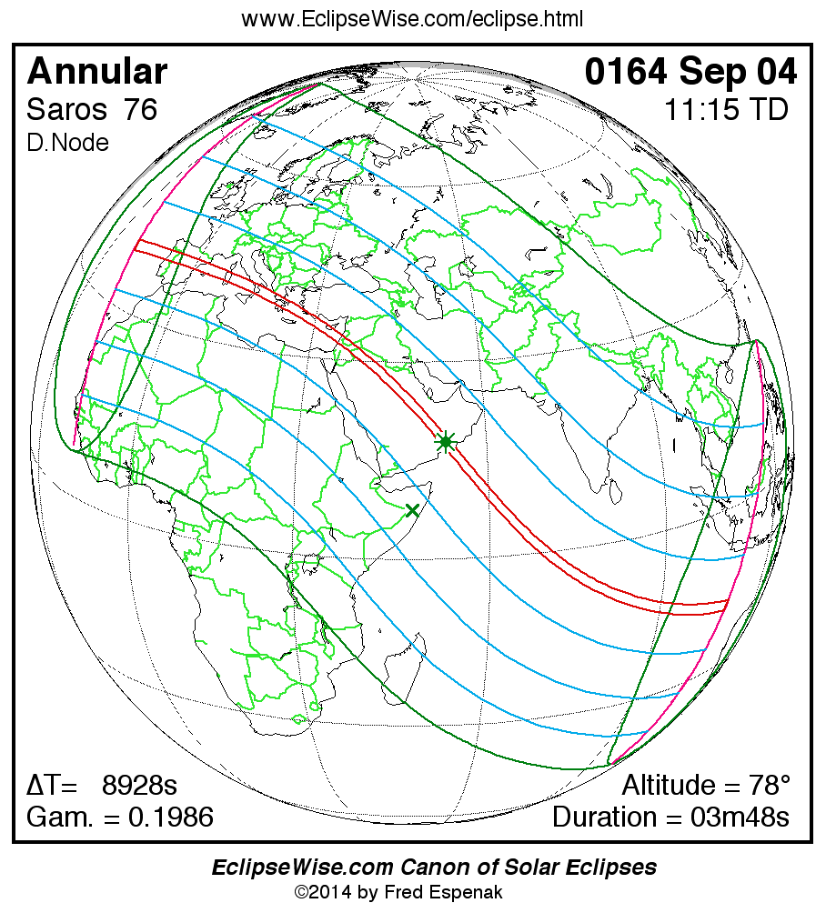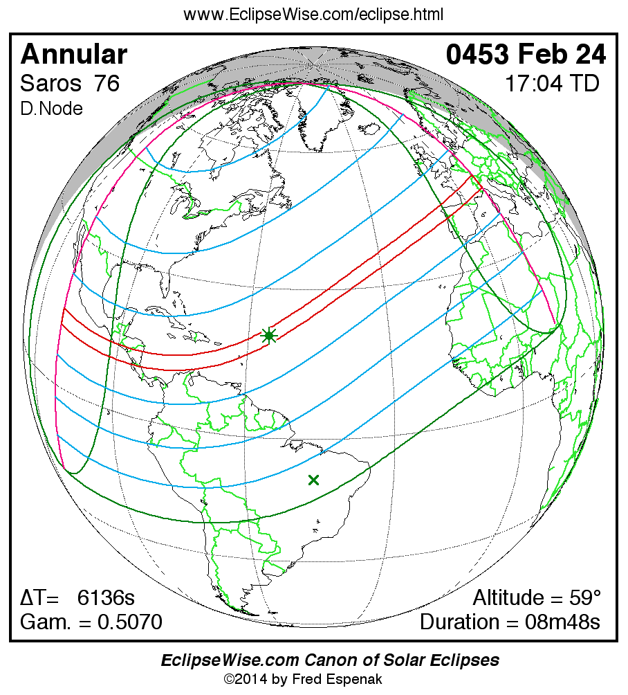 For more information on this series see Statistics for Solar Eclipses of Saros 76 .