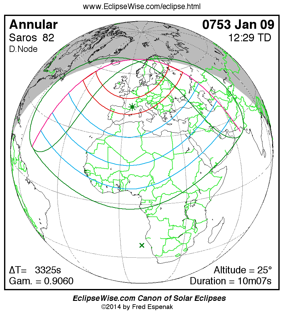 - Click on any global map to go directly to the EclipseWise Prime Page for more information, tables, diagrams and maps. Key to Solar Eclipse Maps explains the features in these maps.