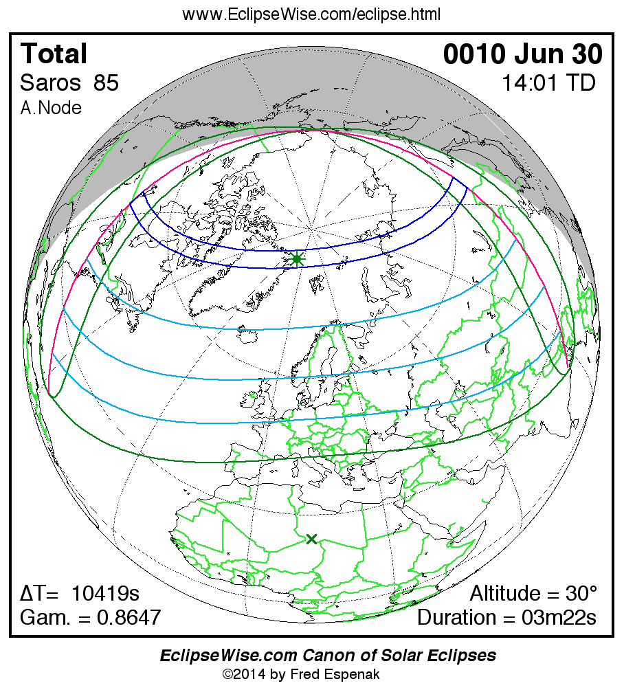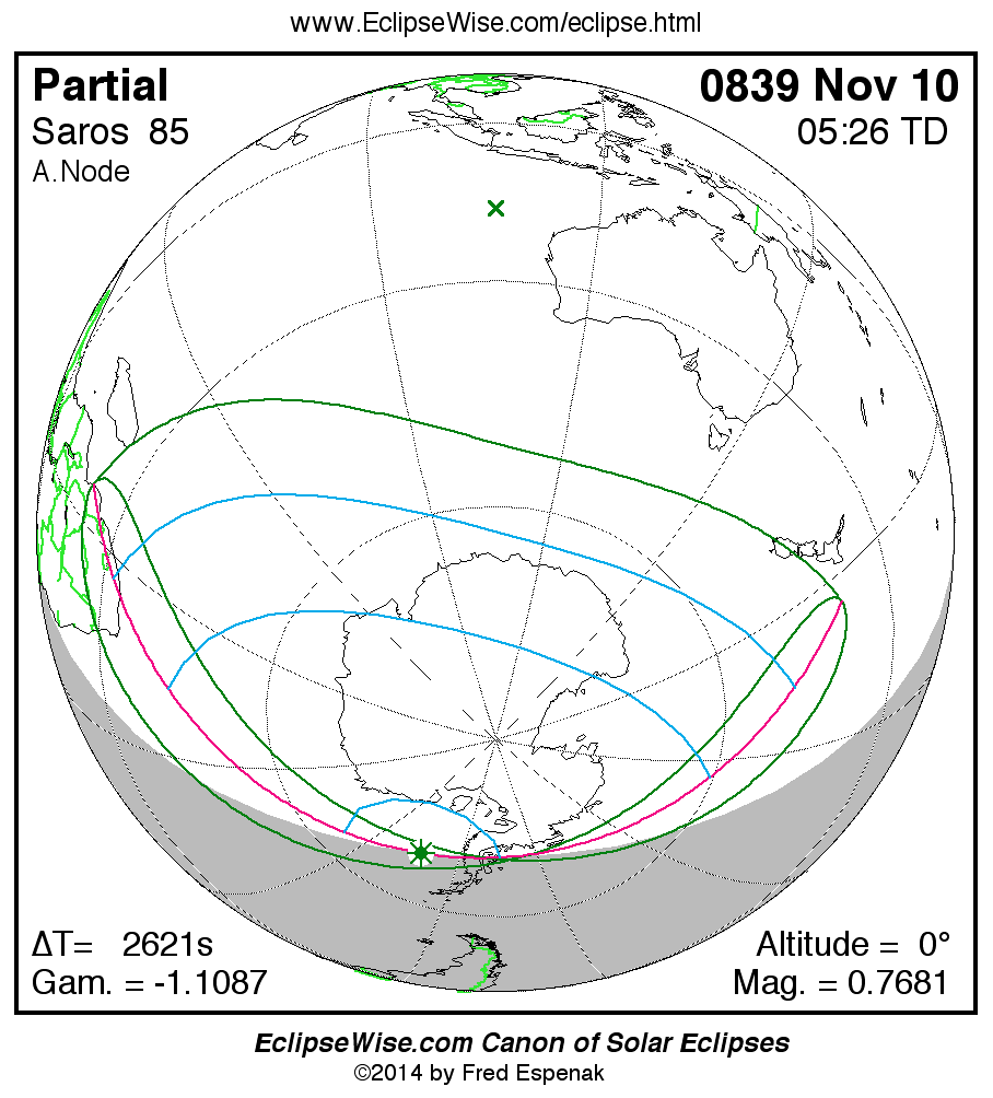 For more information on this series see Statistics for Solar Eclipses of Saros 85 .