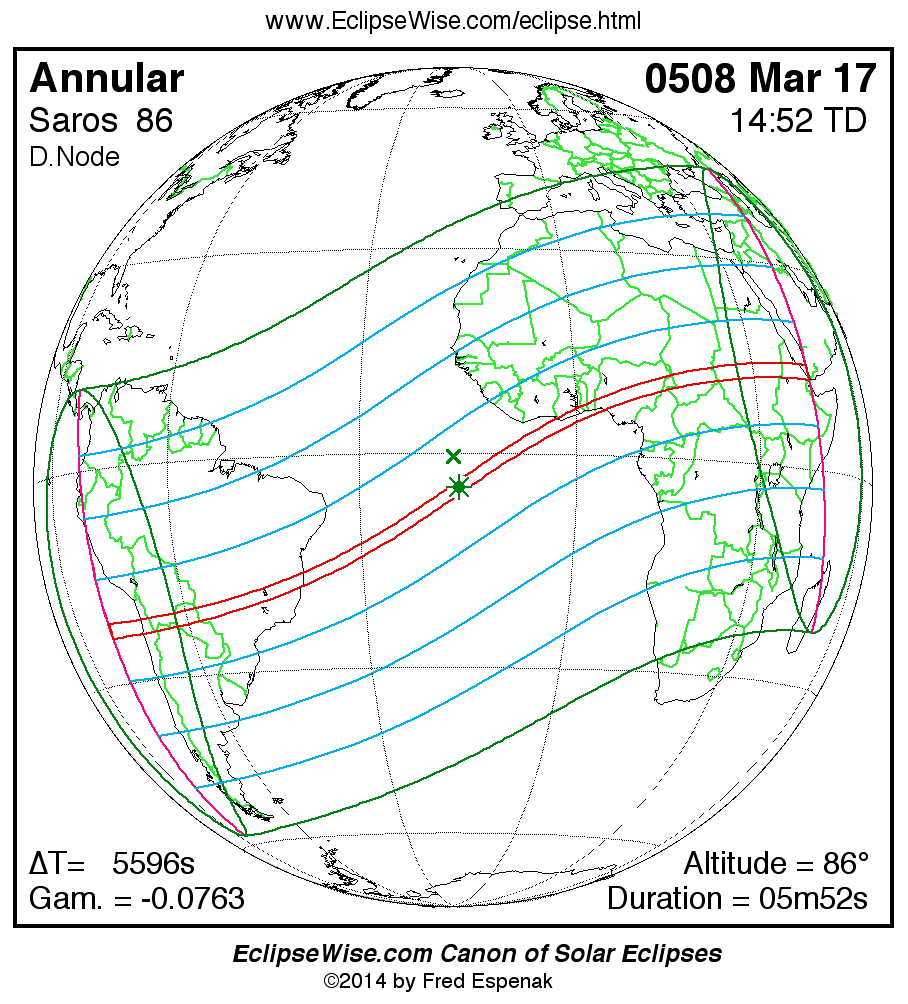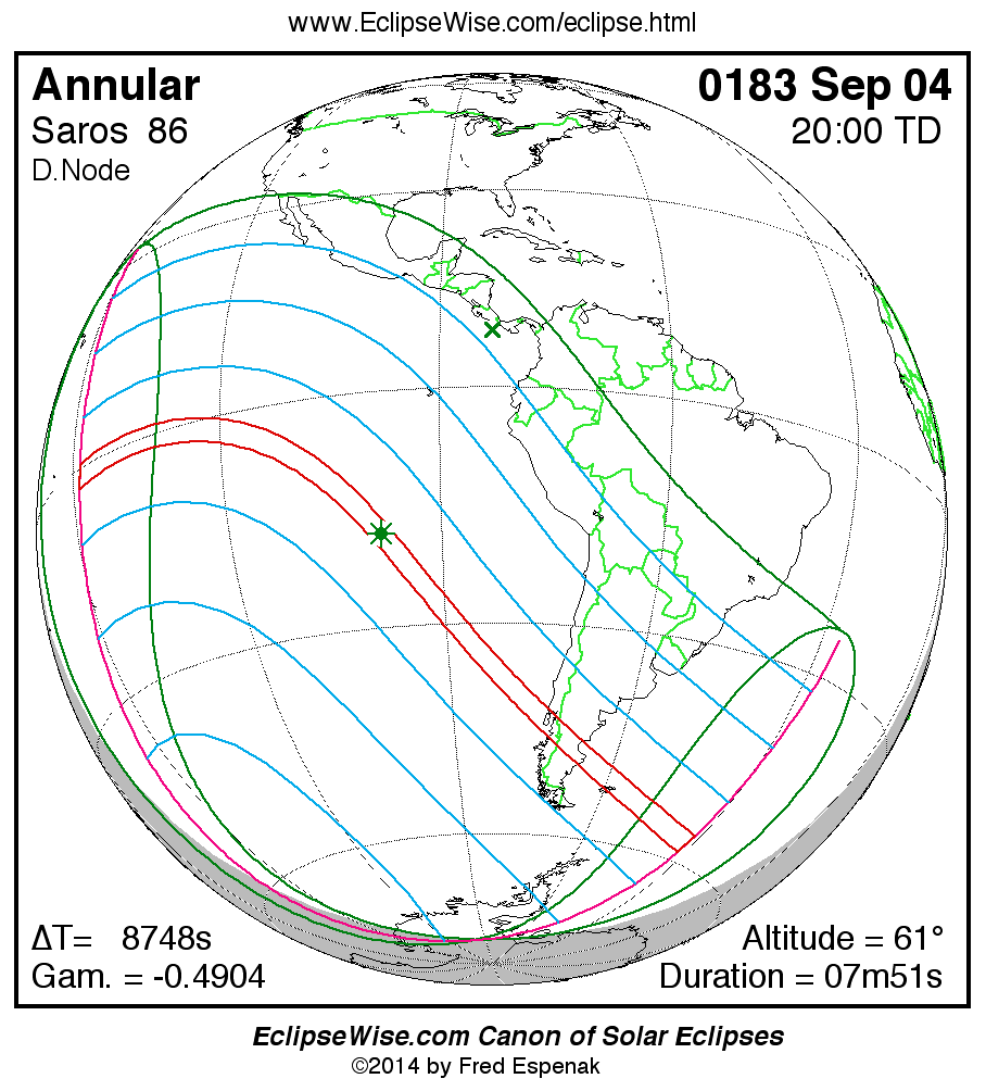 For more information on this series see Statistics for Solar Eclipses of Saros 86 .