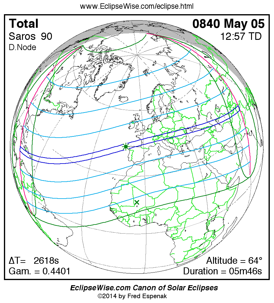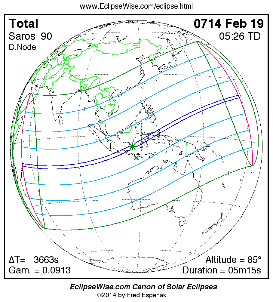 - Click on any global map to go directly to the EclipseWise Prime Page for more information, tables, diagrams and maps. Key to Solar Eclipse Maps explains the features in these maps.