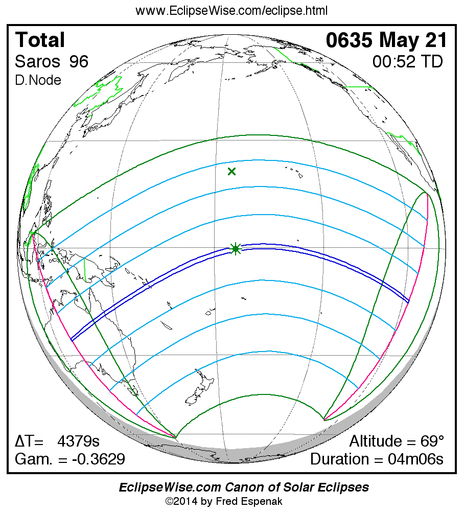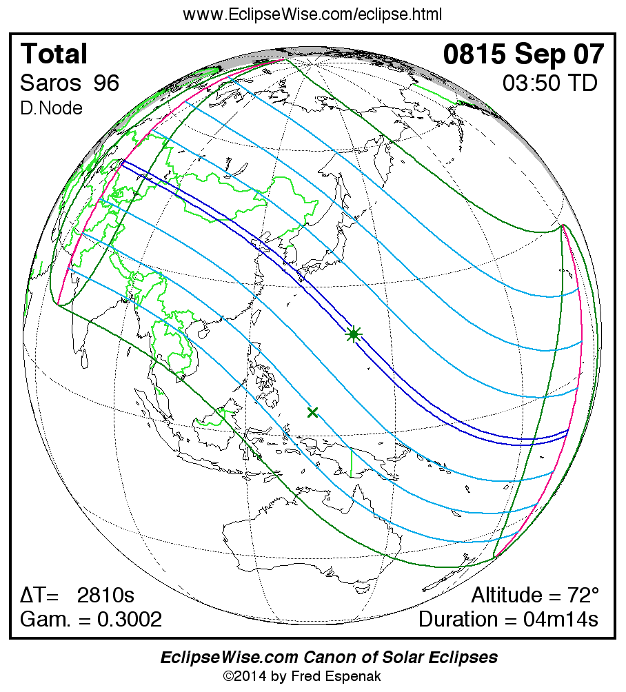 - Click on any global map to go directly to the EclipseWise Prime Page for more information, tables, diagrams and maps. Key to Solar Eclipse Maps explains the features in these maps.