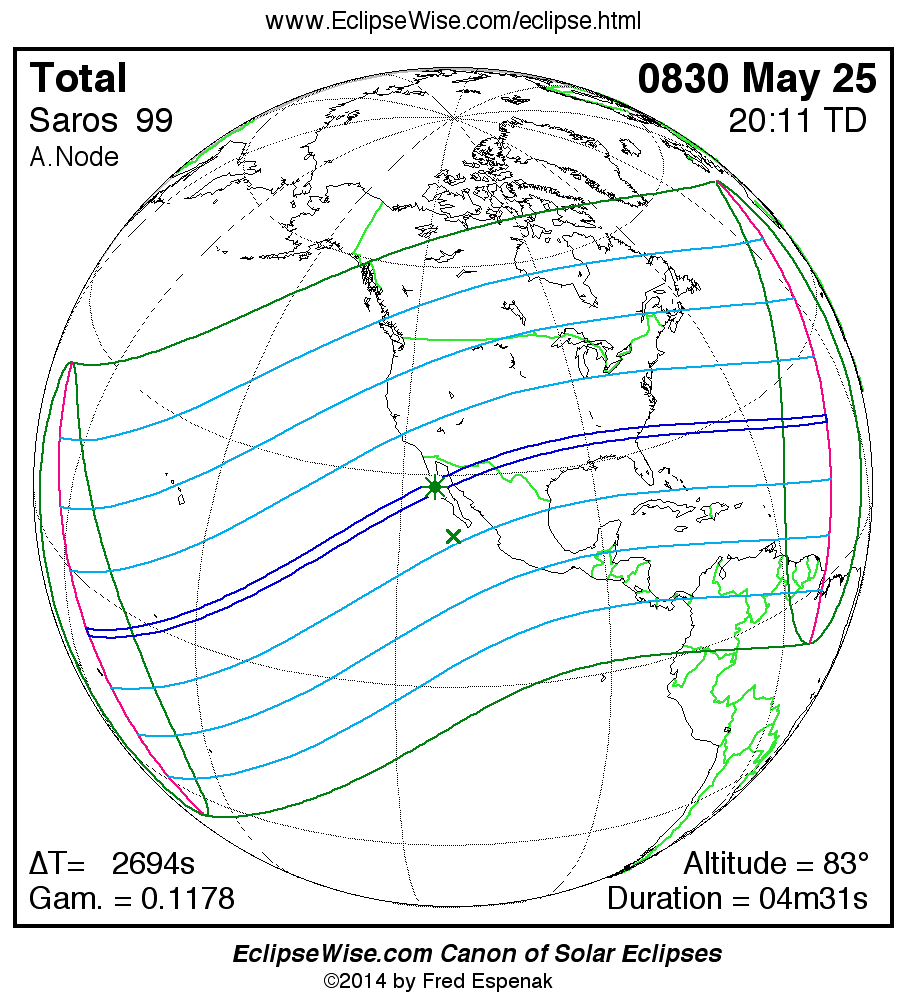 - Click on any global map to go directly to the EclipseWise Prime Page for more information, tables, diagrams and maps. Key to Solar Eclipse Maps explains the features in these maps.