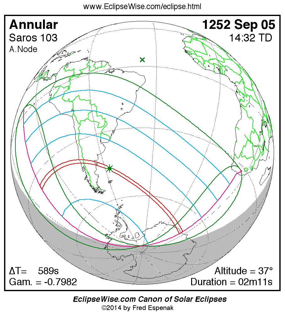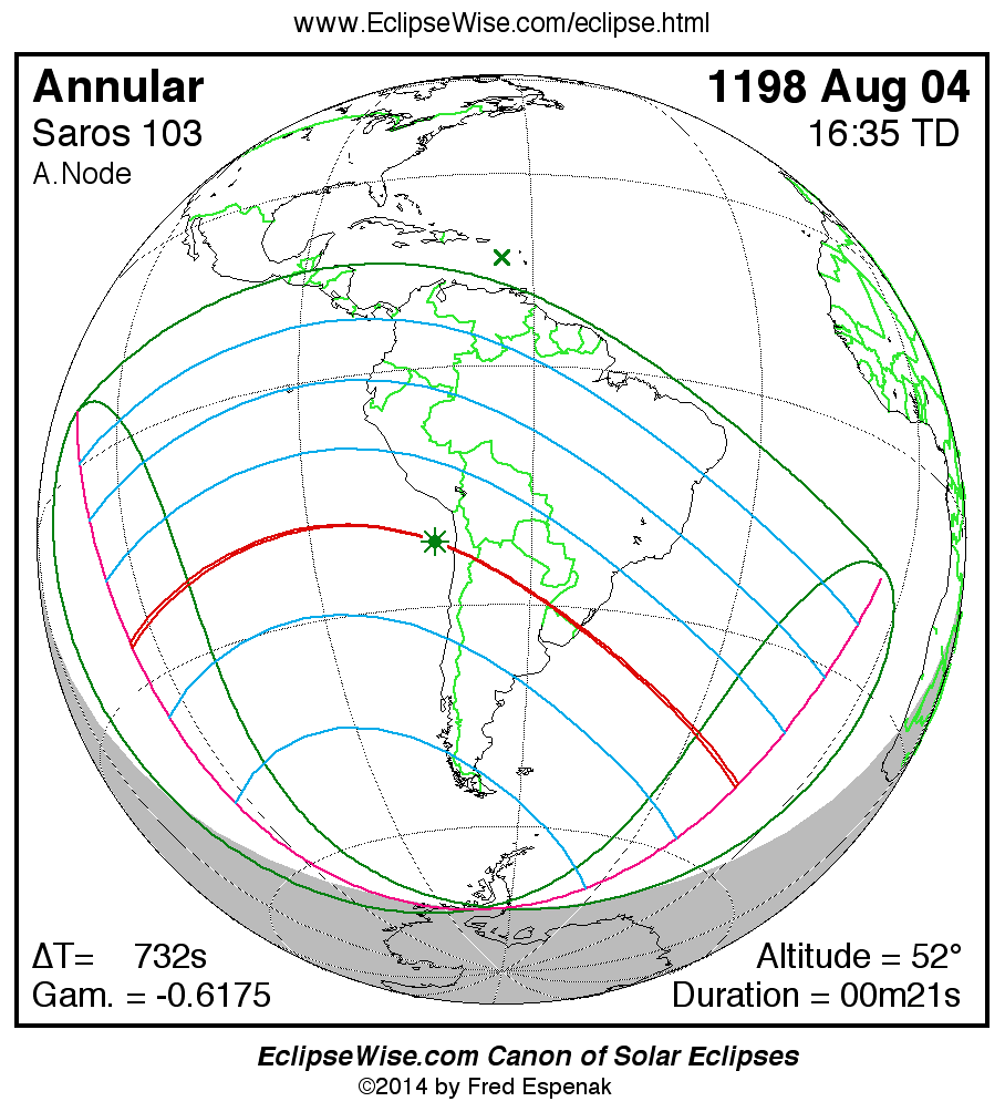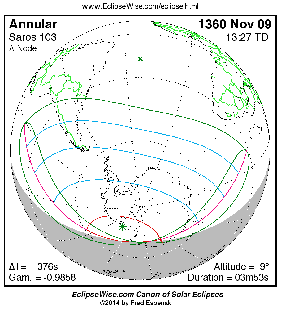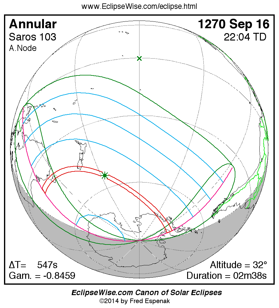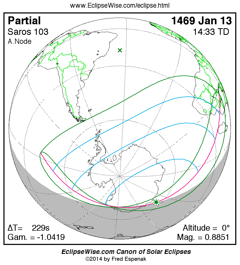 For more information on this series see Statistics for Solar Eclipses of Saros 103 .
