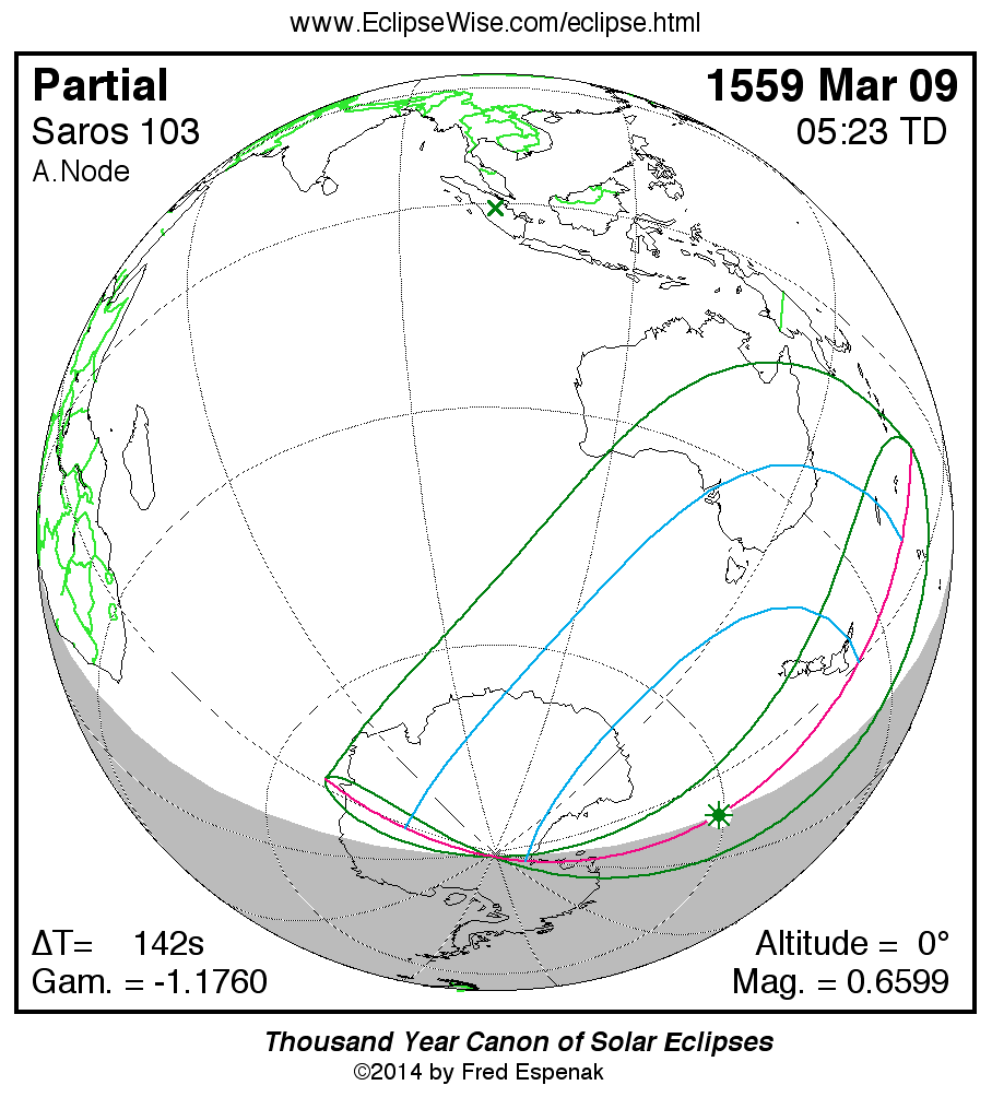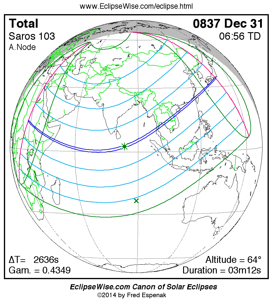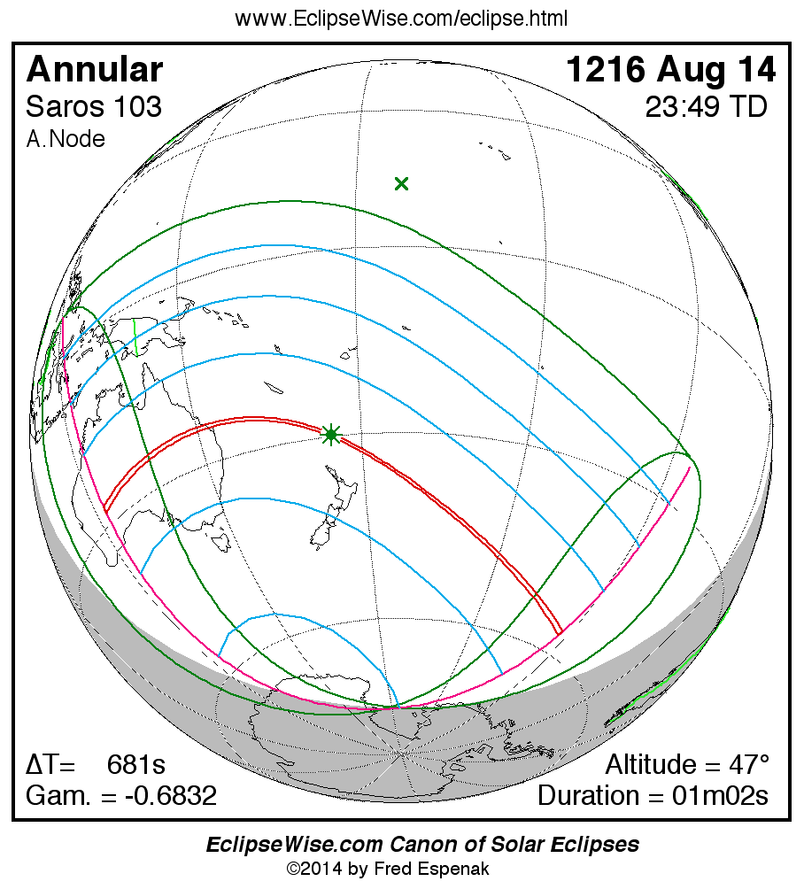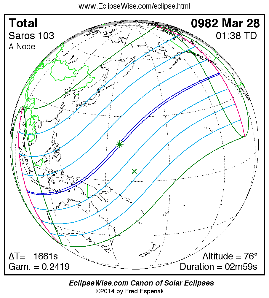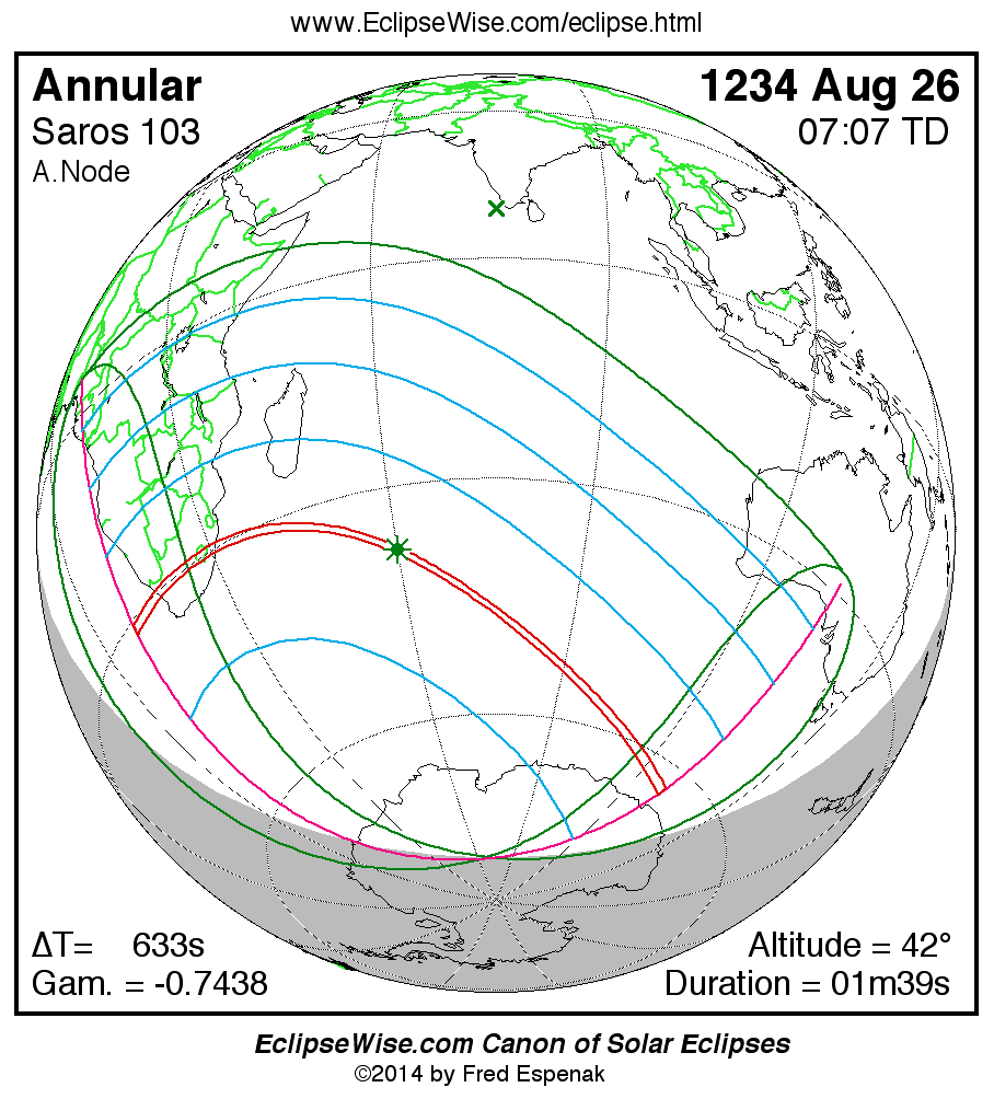 For more information on this series see Statistics for Solar Eclipses of Saros 103 .