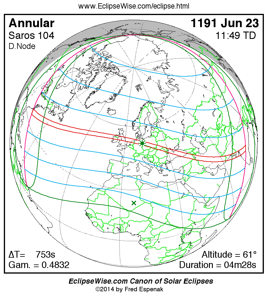 For more information on this series see Statistics for Solar Eclipses of Saros 104 .