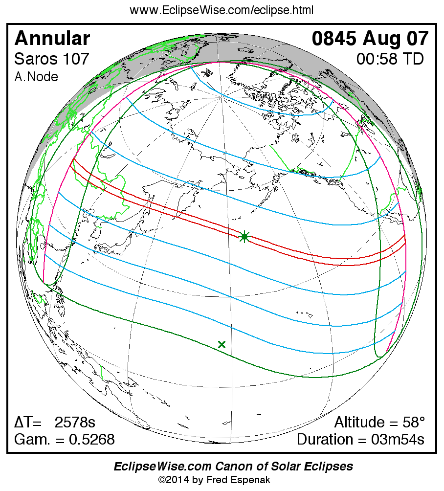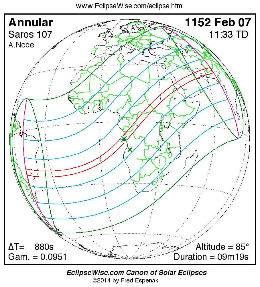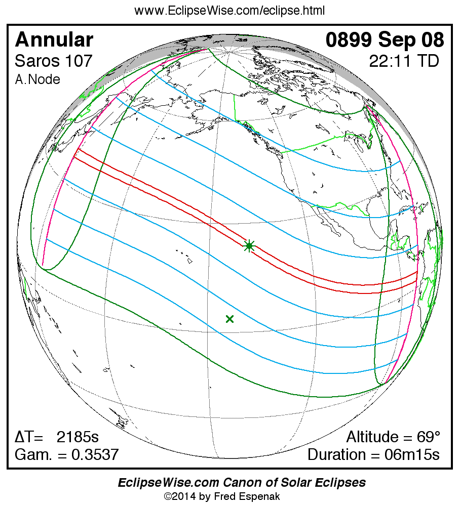 For more information on this series see Statistics for Solar Eclipses of Saros 107 .