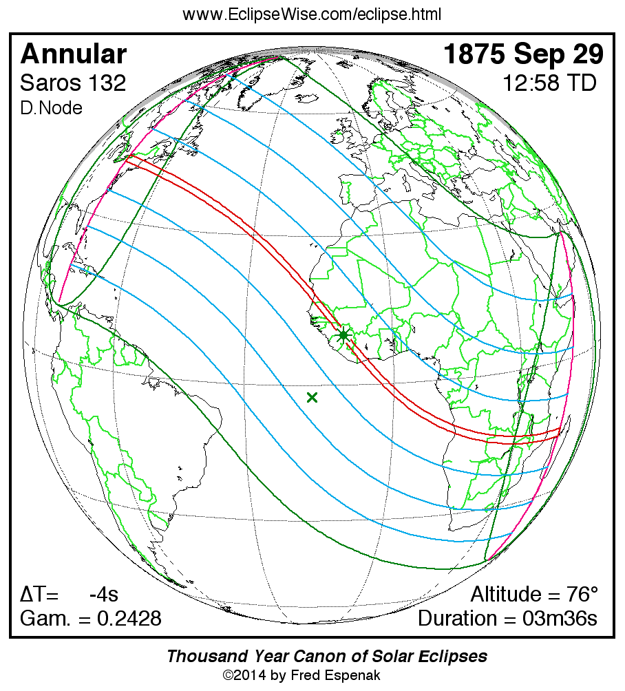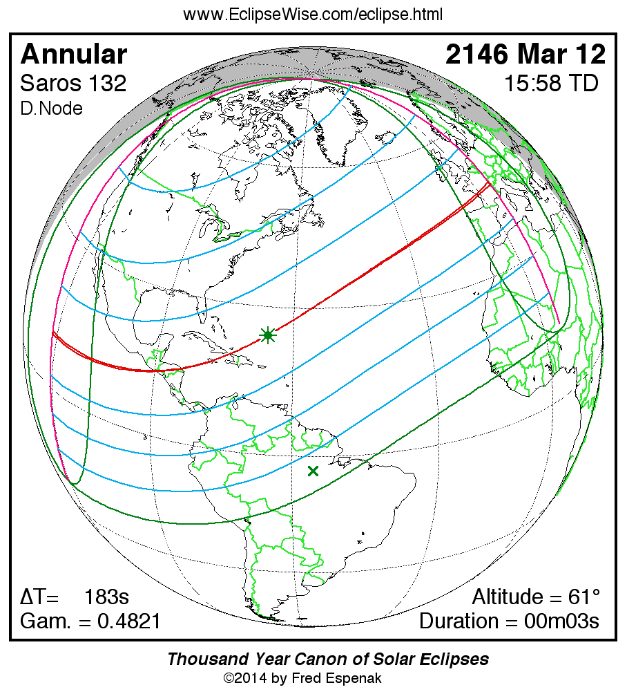 For more information on this series see Statistics for Solar Eclipses of Saros 132 .