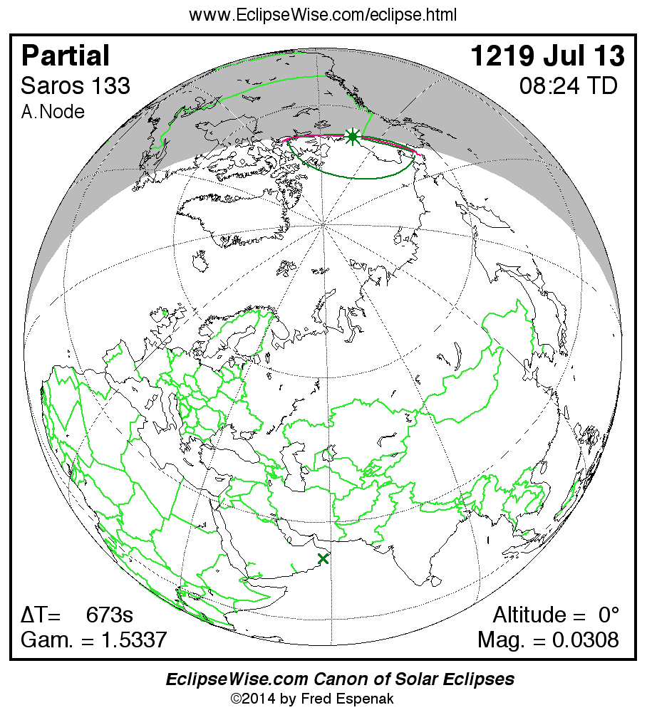 Smallest Partial Solar Eclipse 1219 Jul 13 - 0.03075