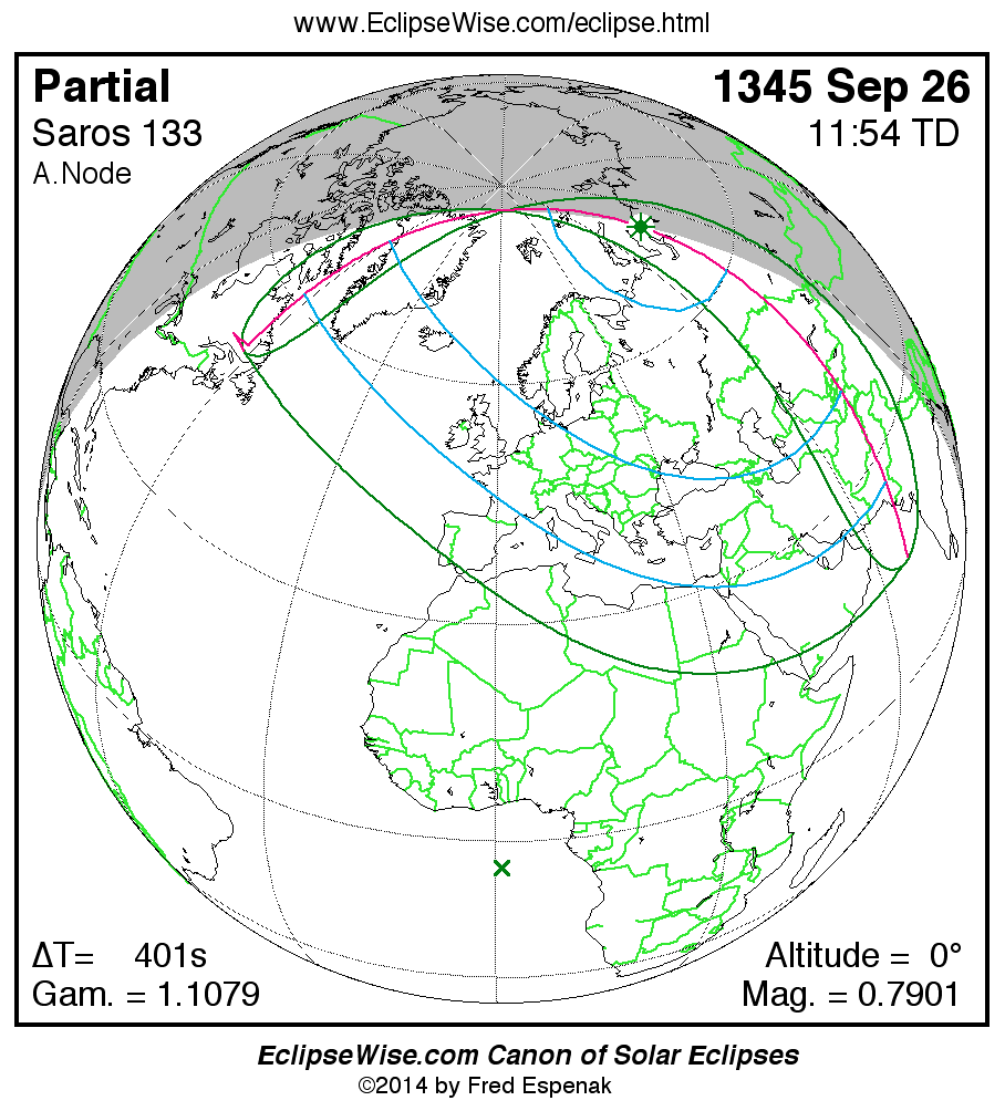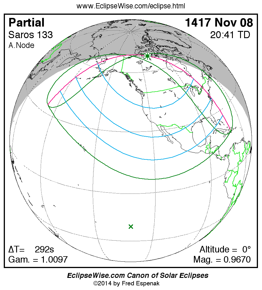 Largest Partial Solar Eclipse 1417 Nov 08 - 0.96697