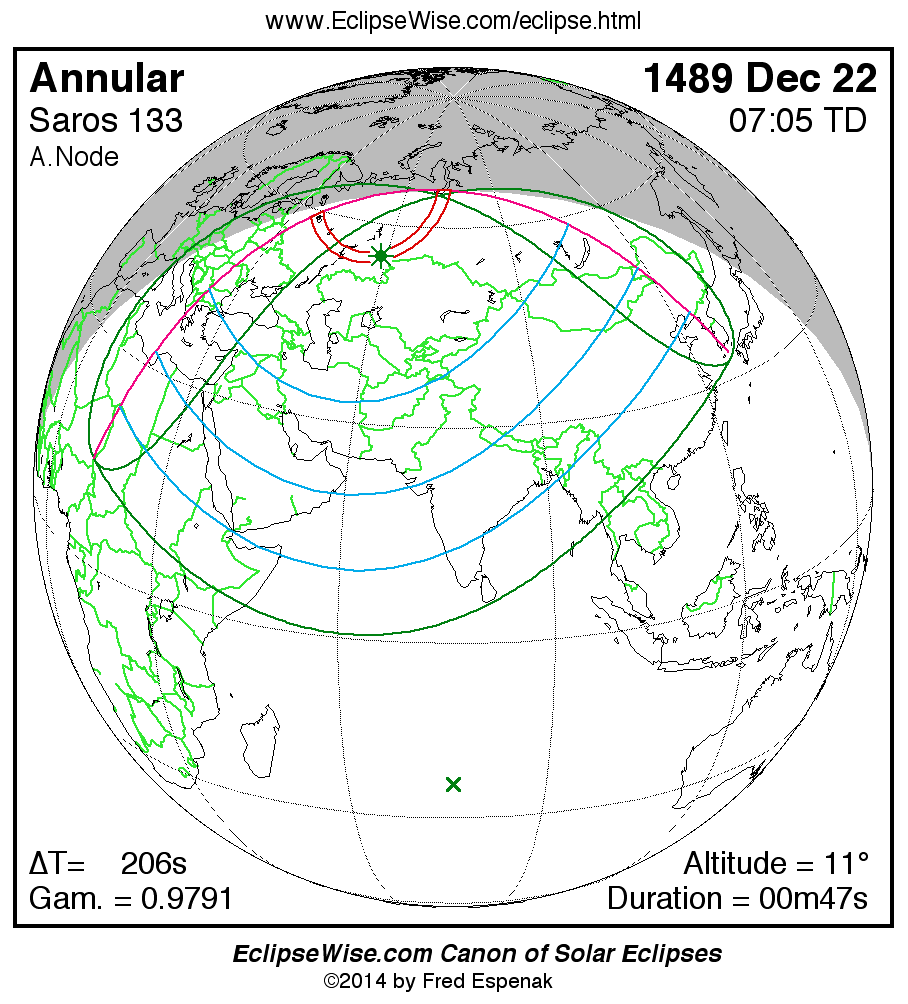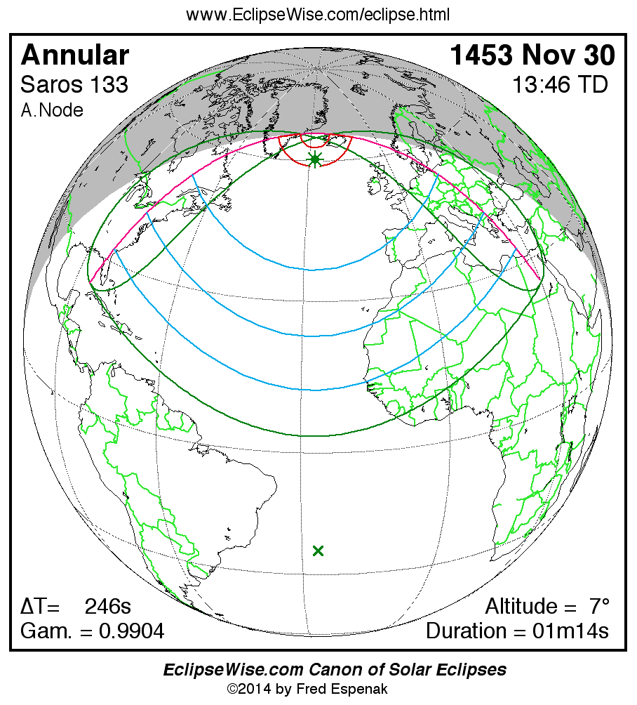 Longest Annular Solar Eclipse 1453 Nov 3001m14s -