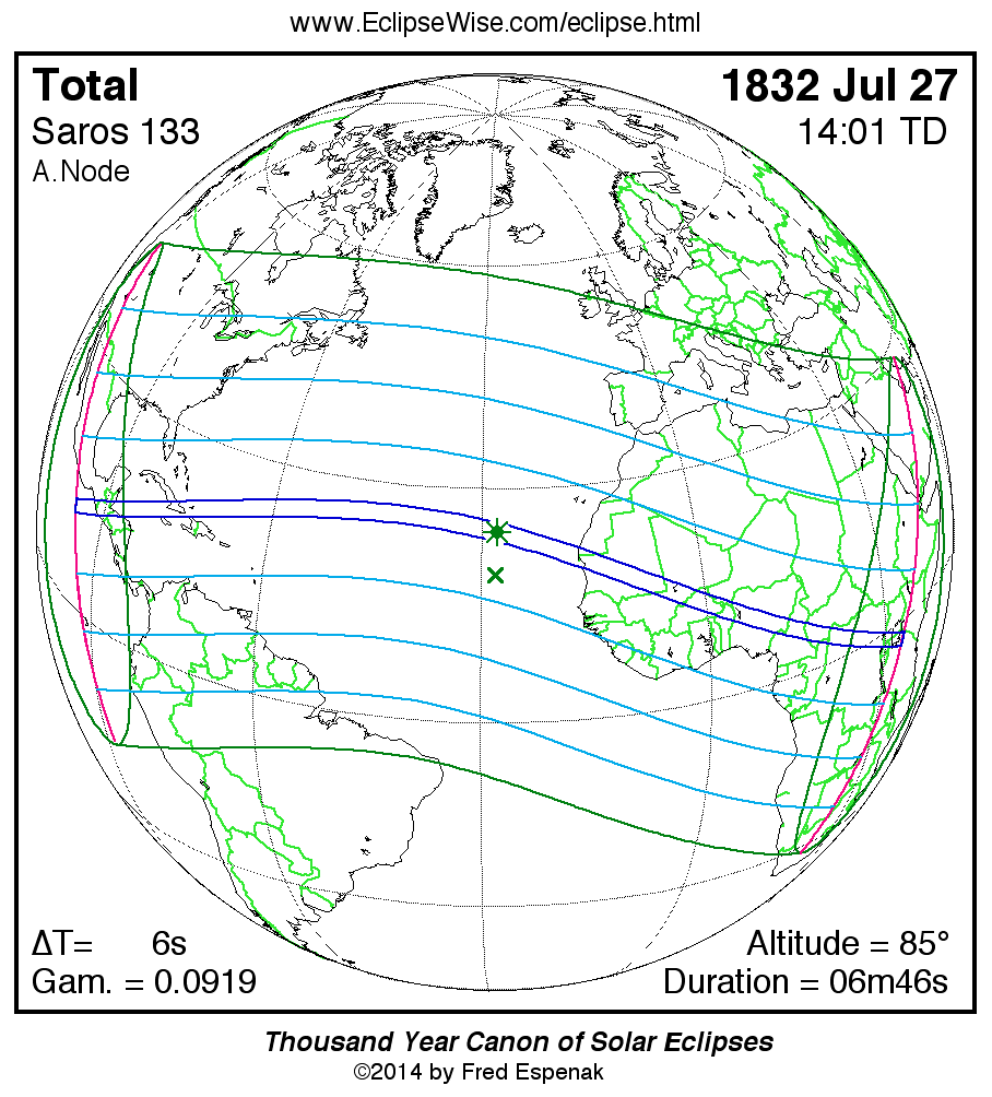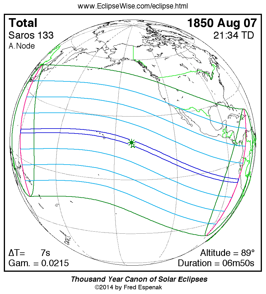 Longest Total Solar Eclipse 1850 Aug 0706m50s -