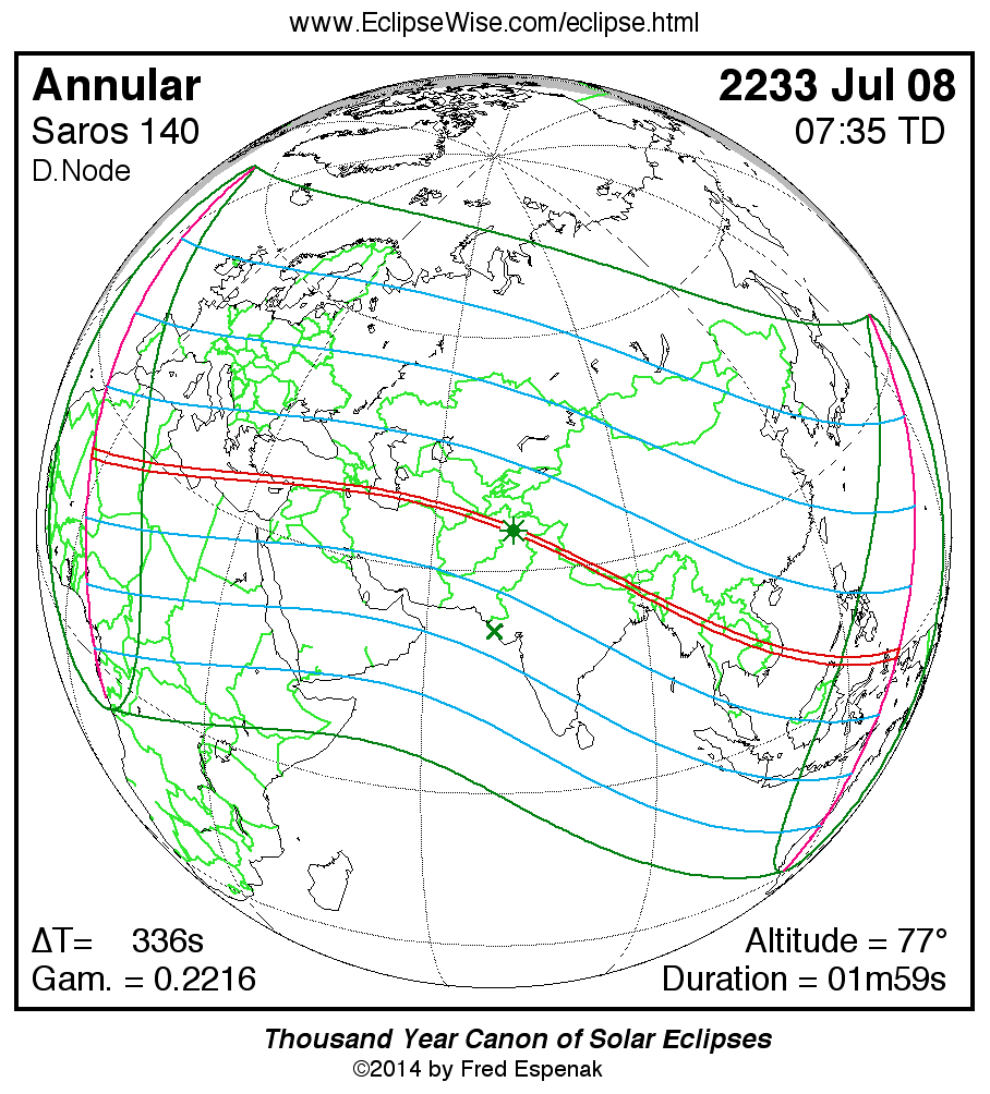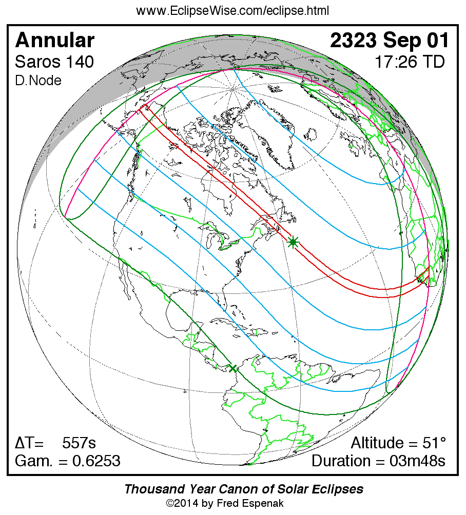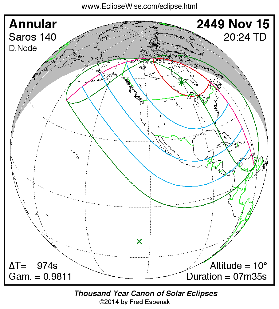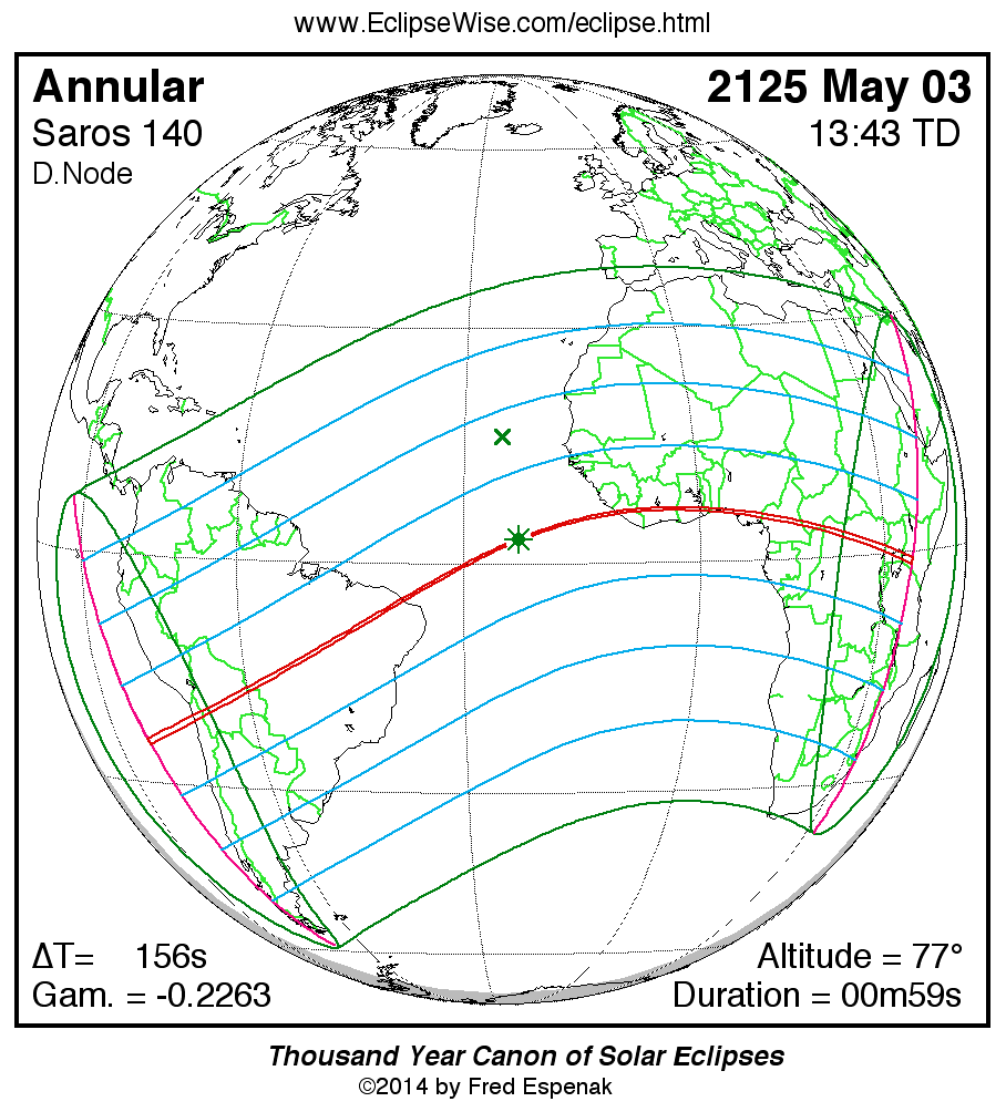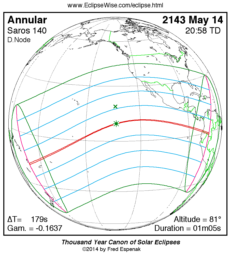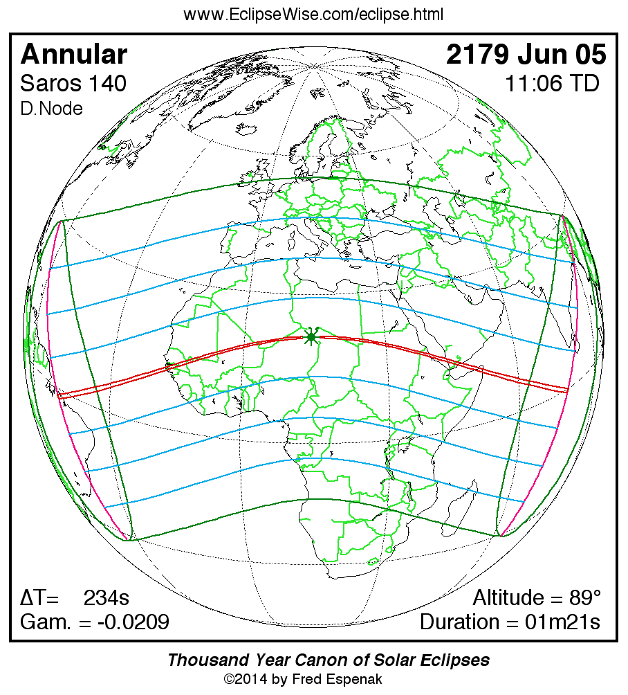 For more information on this series see Statistics for Solar Eclipses of Saros 140 .