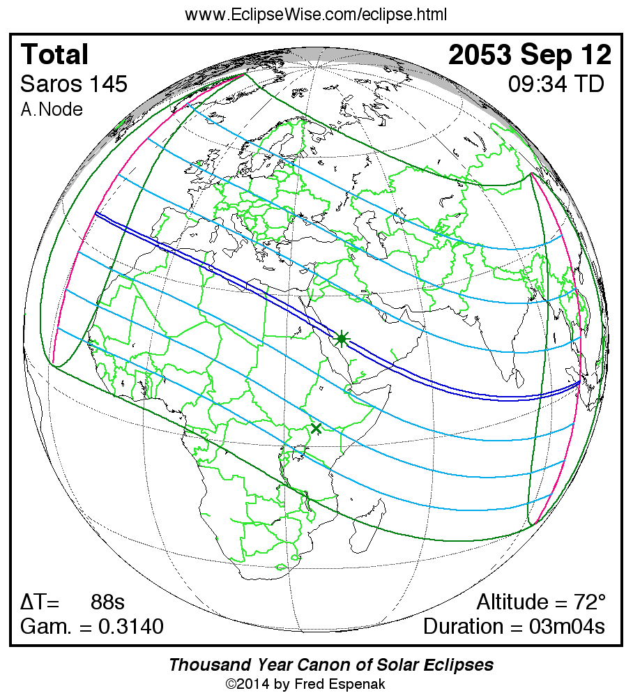 For more information on this series see Statistics for Solar Eclipses of Saros 145 .