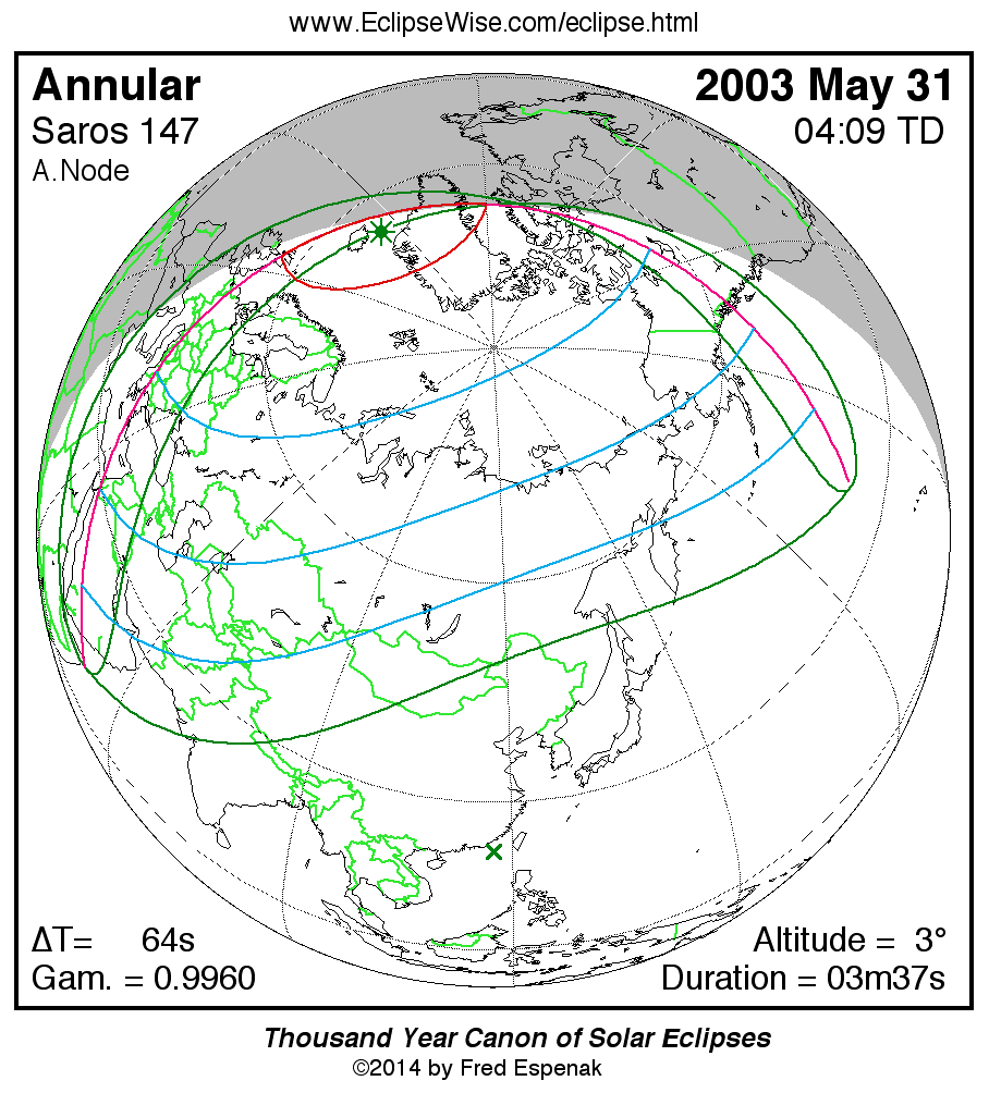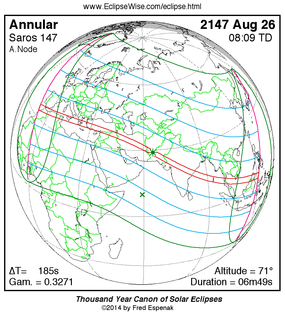 For more information on this series see Statistics for Solar Eclipses of Saros 147 .