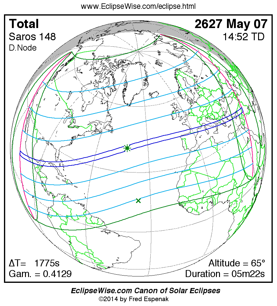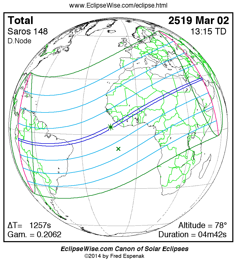 For more information on this series see Statistics for Solar Eclipses of Saros 148 .