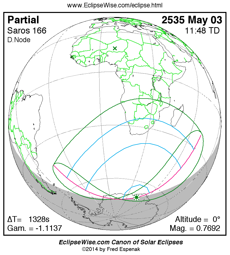 For more information on this series see Statistics for Solar Eclipses of Saros 166 .